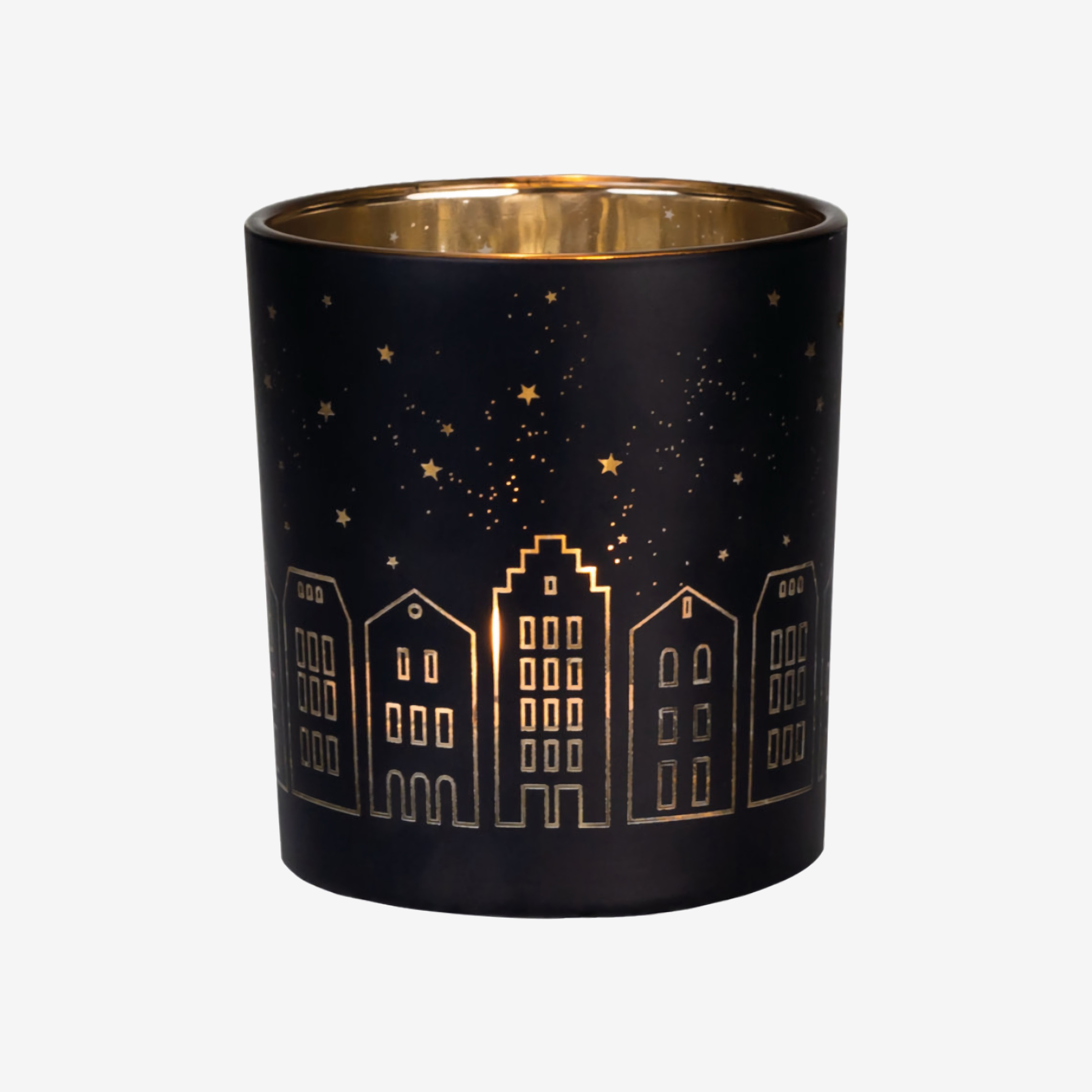 Подсвечник Räder City lights — Light house выполнен в классической форме стакана. Чёрная поверхность подсвечника красиво оттеняет возникающие световые блики. Резной орнамент в виде панорамы города подсвечивается при зажжении свечи, создавая волшебный эффект.