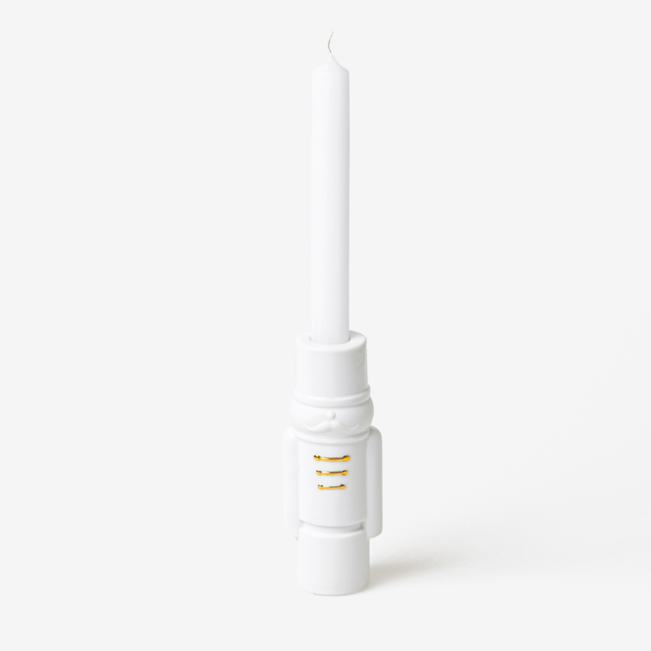 Подсвечник Räder Nutcracker candle holder — Linus — современная интерпретация классической фигурки щелкунчика. За счёт отсутствия детально прорисованных черт лица фигурка выглядит максимально лаконично. Золотые элементы подсвечника мягко отражают пламя свечи, создавая атмосферу ожидания праздника.