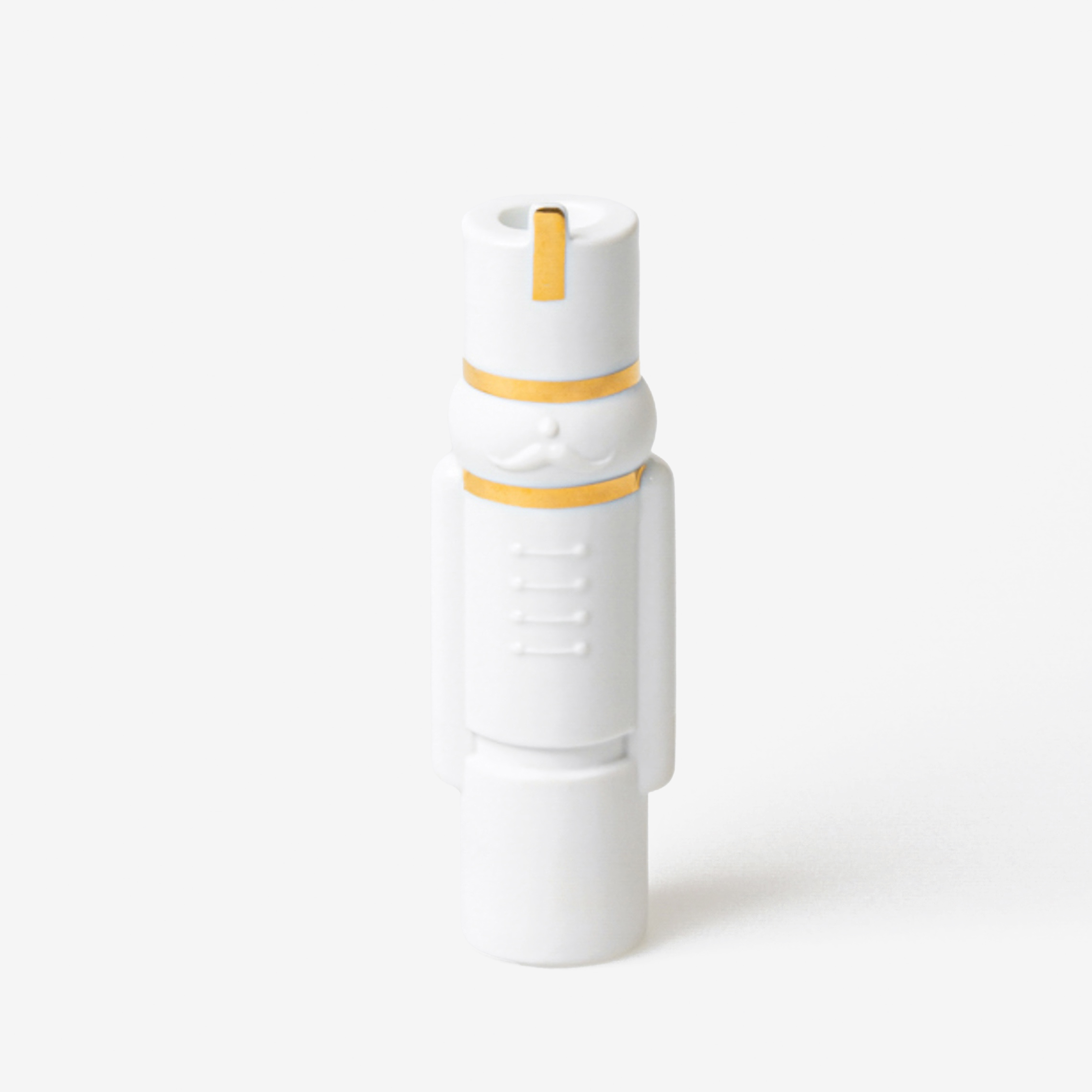 Подсвечник Räder Nutcracker candle holder — Magnus создаёт гармоничную рождественскую композицию с щелкунчиком Nutcracker candle holder — Linus. Компактная фигурка из белого минималистичного фарфора имеет тактильно приятный матовый финиш. Золотые детали щелкунчика мягко сверкают, отражая блики тёплого пламени свечи.