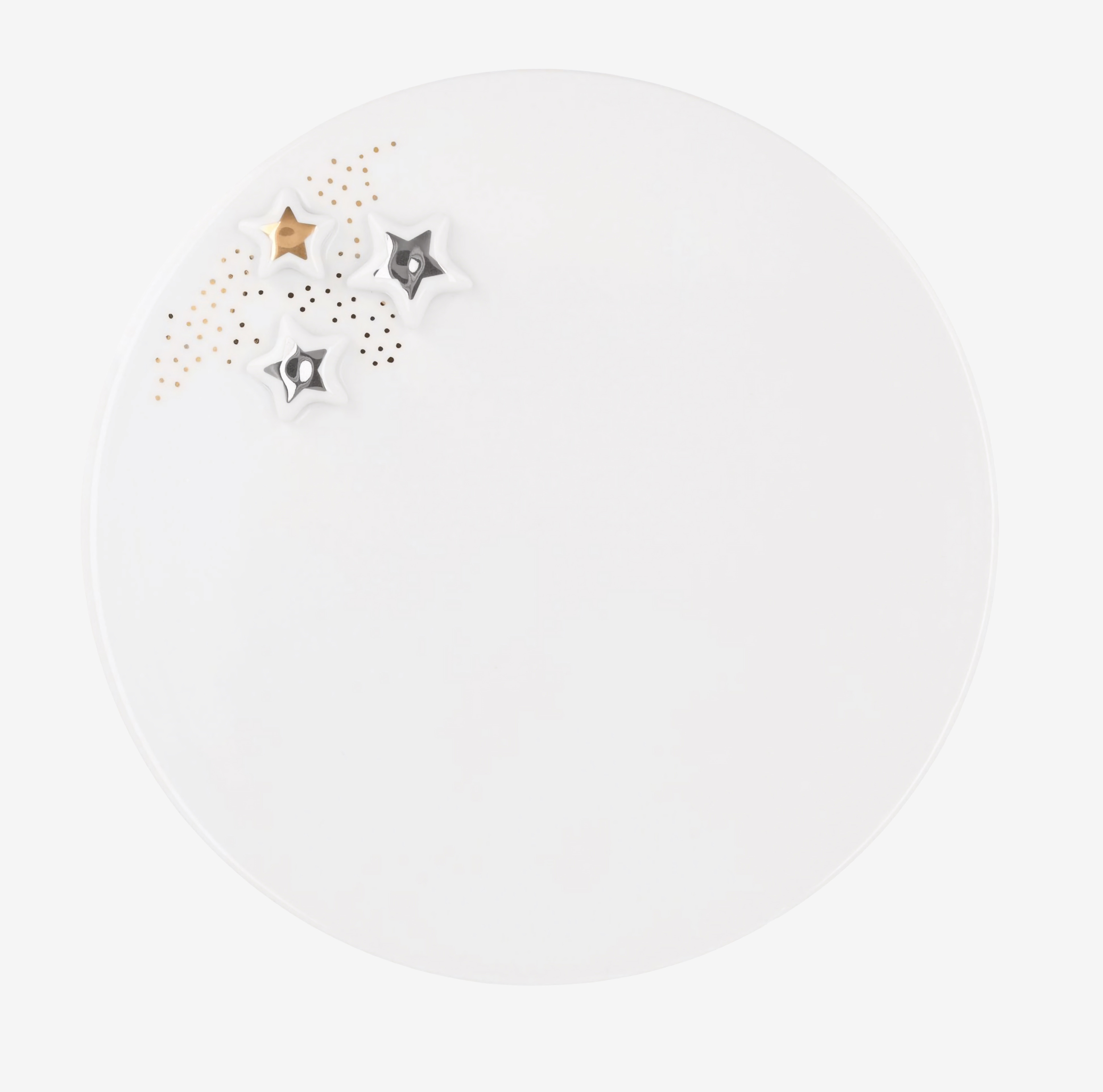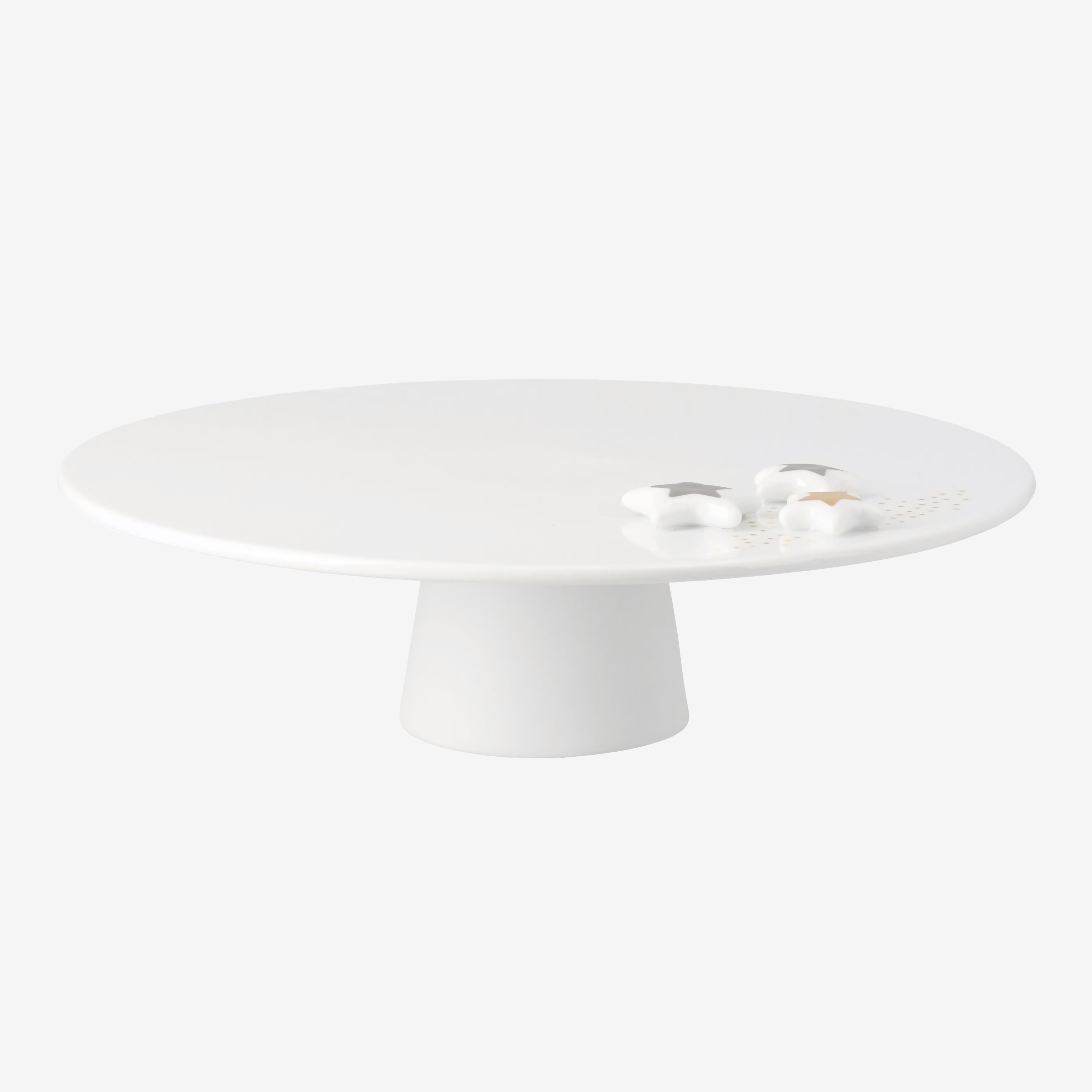 Сервировочная подставка Räder Cinnamon stars — элегантный способ подать конфеты и печенья. Дизайнер использовал минималистичный белый фон, чтобы выделить украшения в виде 3D-звёзд серебряного и золотого оттенка. Сервировочная подставка гармонично впишется в праздничное оформление стола в скандинавском или современном стиле.