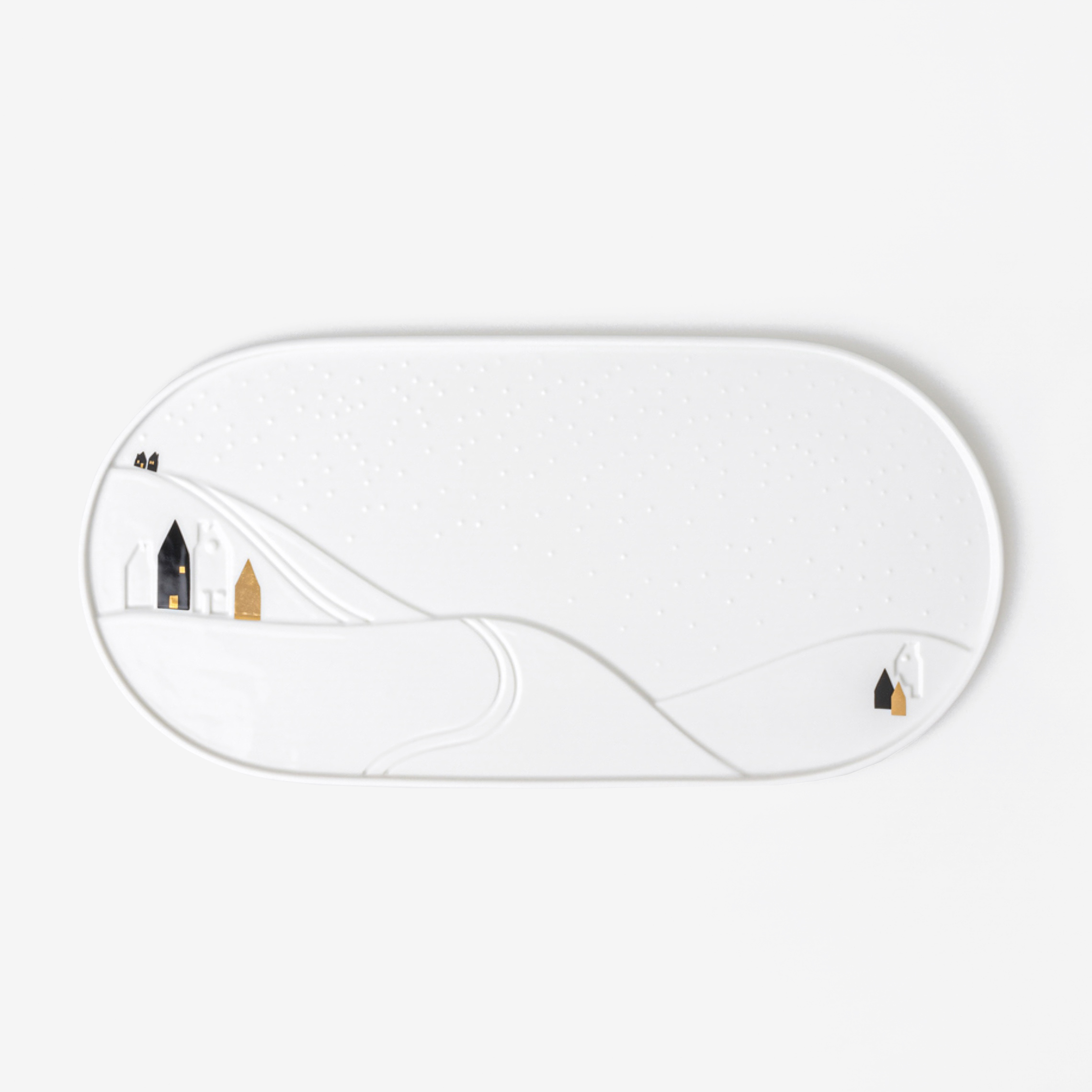 Сервировочное блюдо Räder Snowy Day Serving plate украшено сказочным зимним пейзажем. Блюдо вместительного размера идеально подойдёт для подачи закусок, канапе или сырной нарезки. Белоснежный фарфор делает предмет посуды не только изысканным, но и прочным.