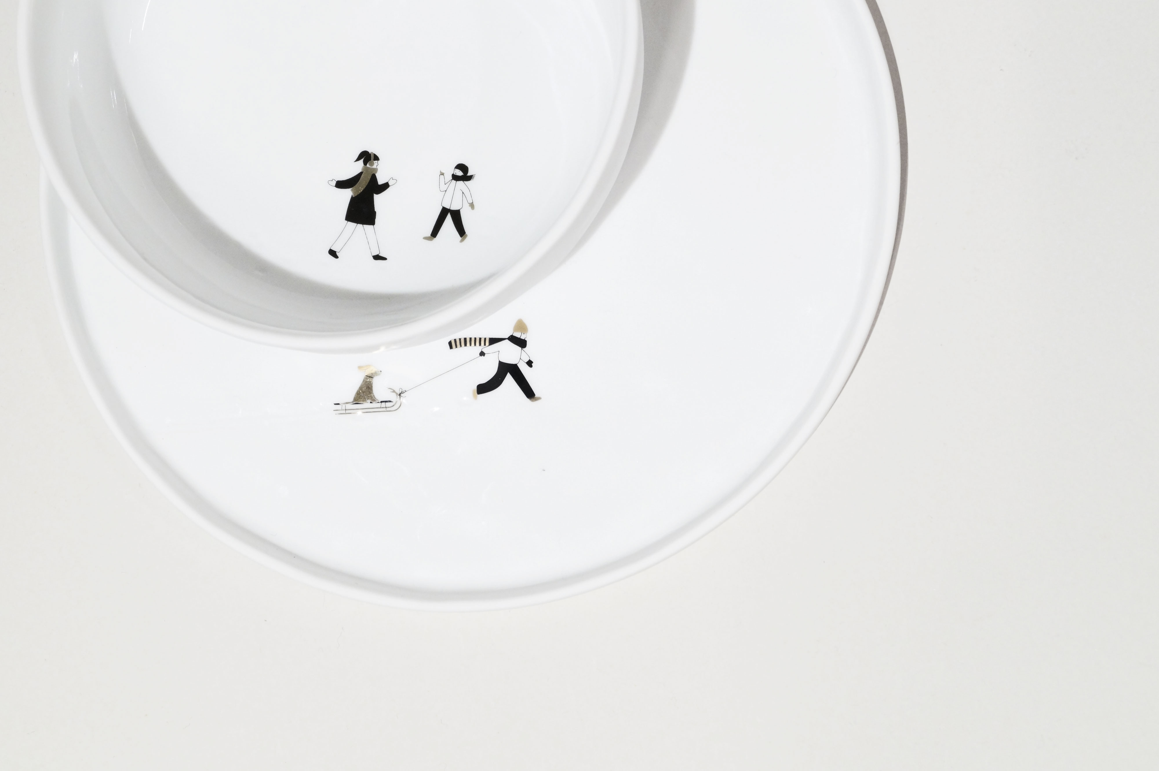 Сервировочный набор на одного человека. Сет №1 Räder переносит всю радость зимних забав прямо на ваш стол, рассказывая об активных видах праздничного отдыха. Набор посуды из белоснежного фарфора украшен поднимающими настроение рисунками. Сюжеты на тарелках и мисках вдохновлены катанием на санях и лыжах, и весёлой игрой в снежки.