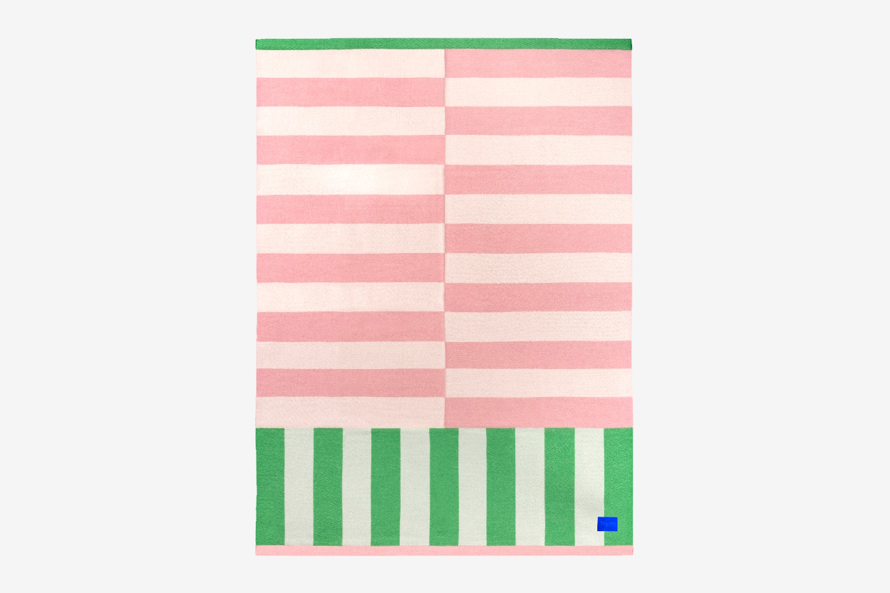 В смелых графических принтах дизайнер Arthur Arbesser вдохновляется архитектурным наследием его родного города Вены. Каждый из вариантов пледа Hem Stripe имеет узор в привлекательной нетрадиционной цветовой палитре.