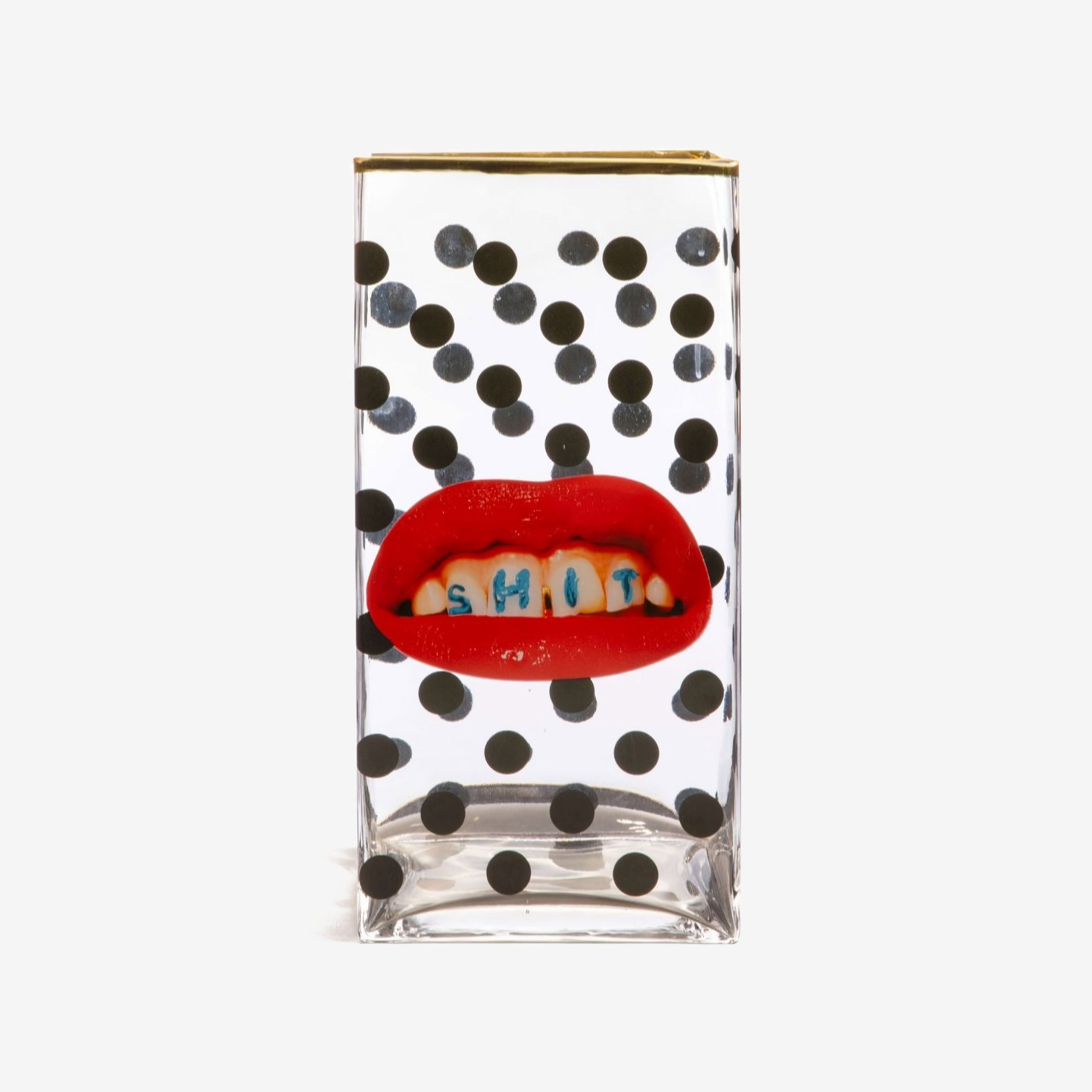 Ваза Seletti Glass Vase Shit Pois была разработана в сотрудничестве с художником Maurizio Cattelan и фотографом Pierpaolo Ferrari. Яркий сюрреалистичный принт, дополненный крупным чёрным горохом, придаёт этому декоративному предмету провокационный характер. Ваза имеет нестандартную прямоугольную форму.