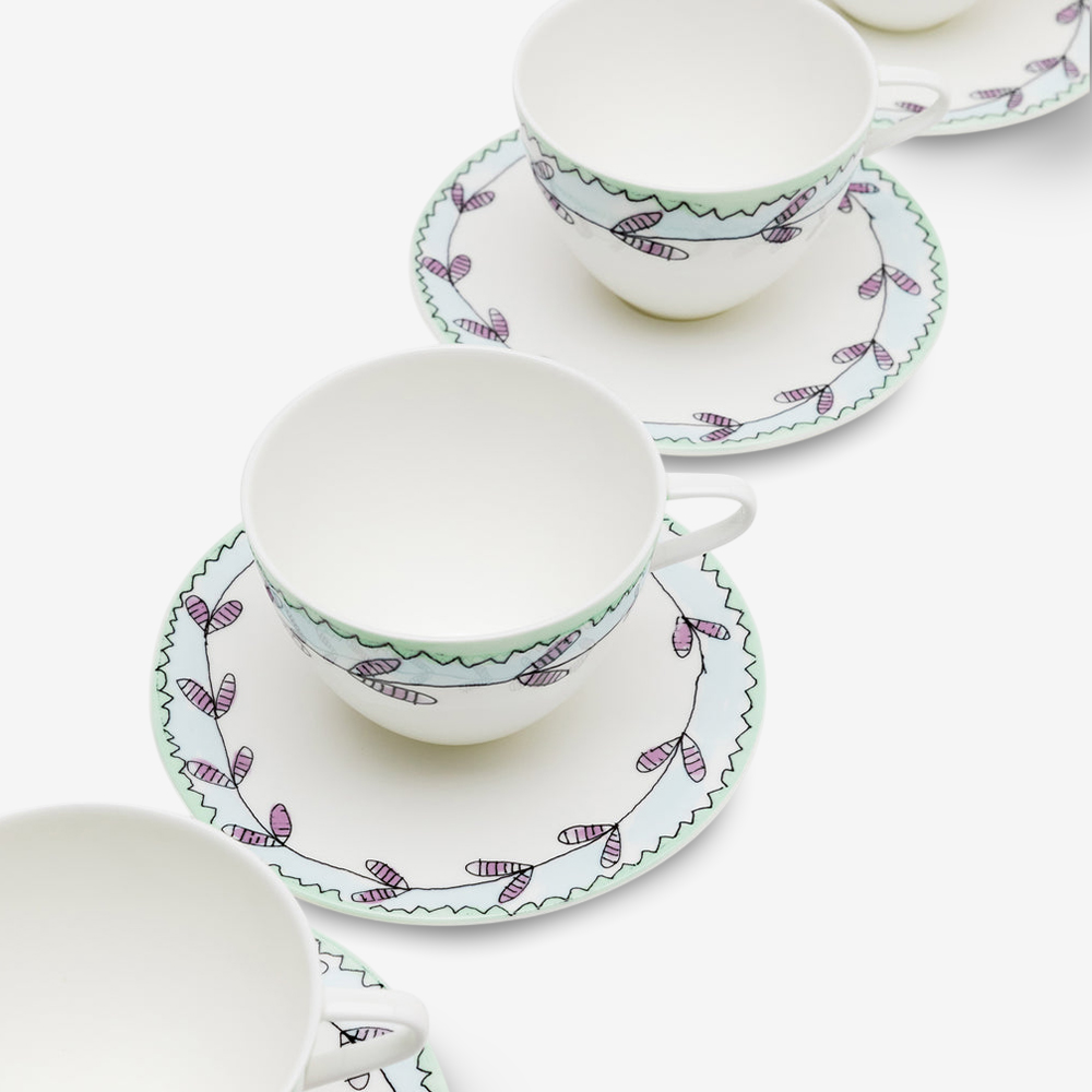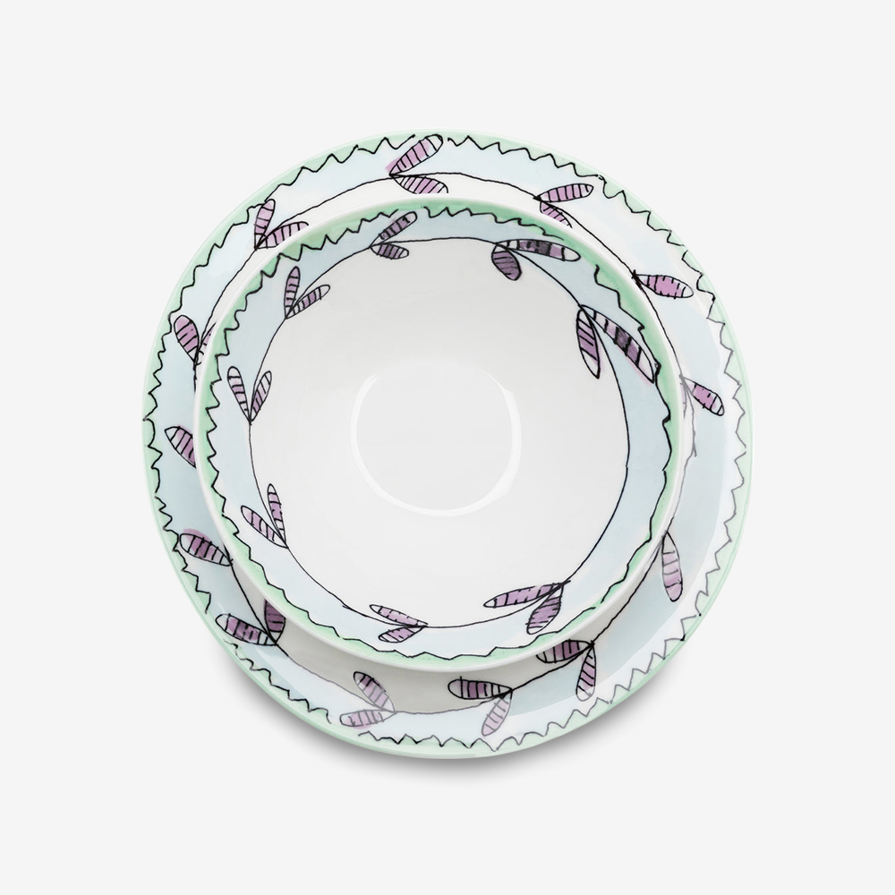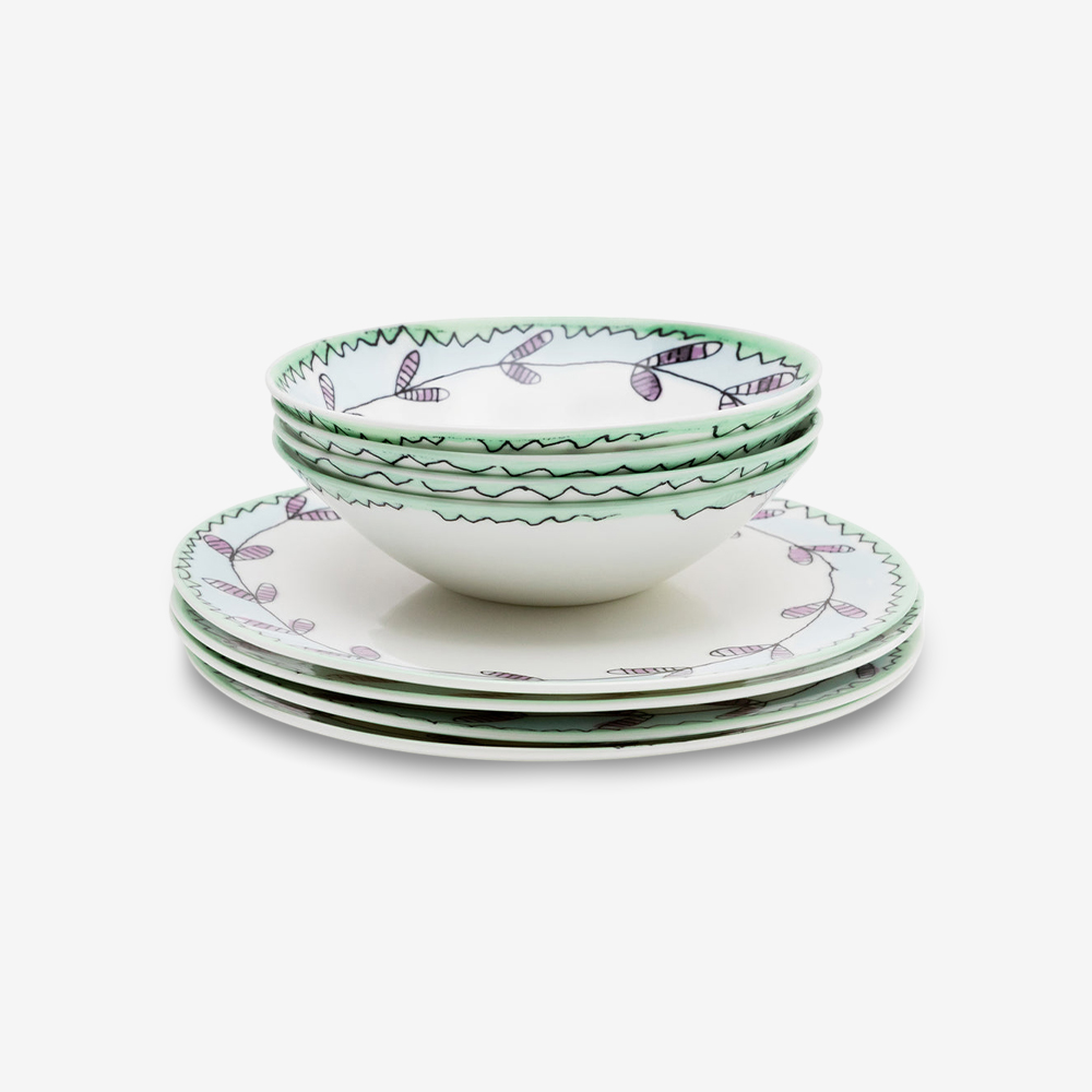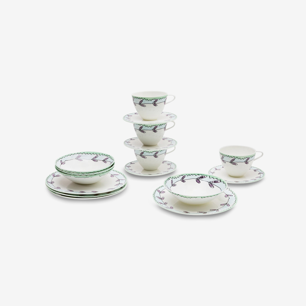 Набор из 16 предметов Breakfast Blossom Milk Midnight Flowers, разработанный Marni, рассчитан на 4 персоны. На тарелки и чашки нанесён нежный узор в виде сердечек в пастельных тонах. Такой набор отлично подойдет для завтрака и привнесёт в столовую зону нежное романтичное настроение.