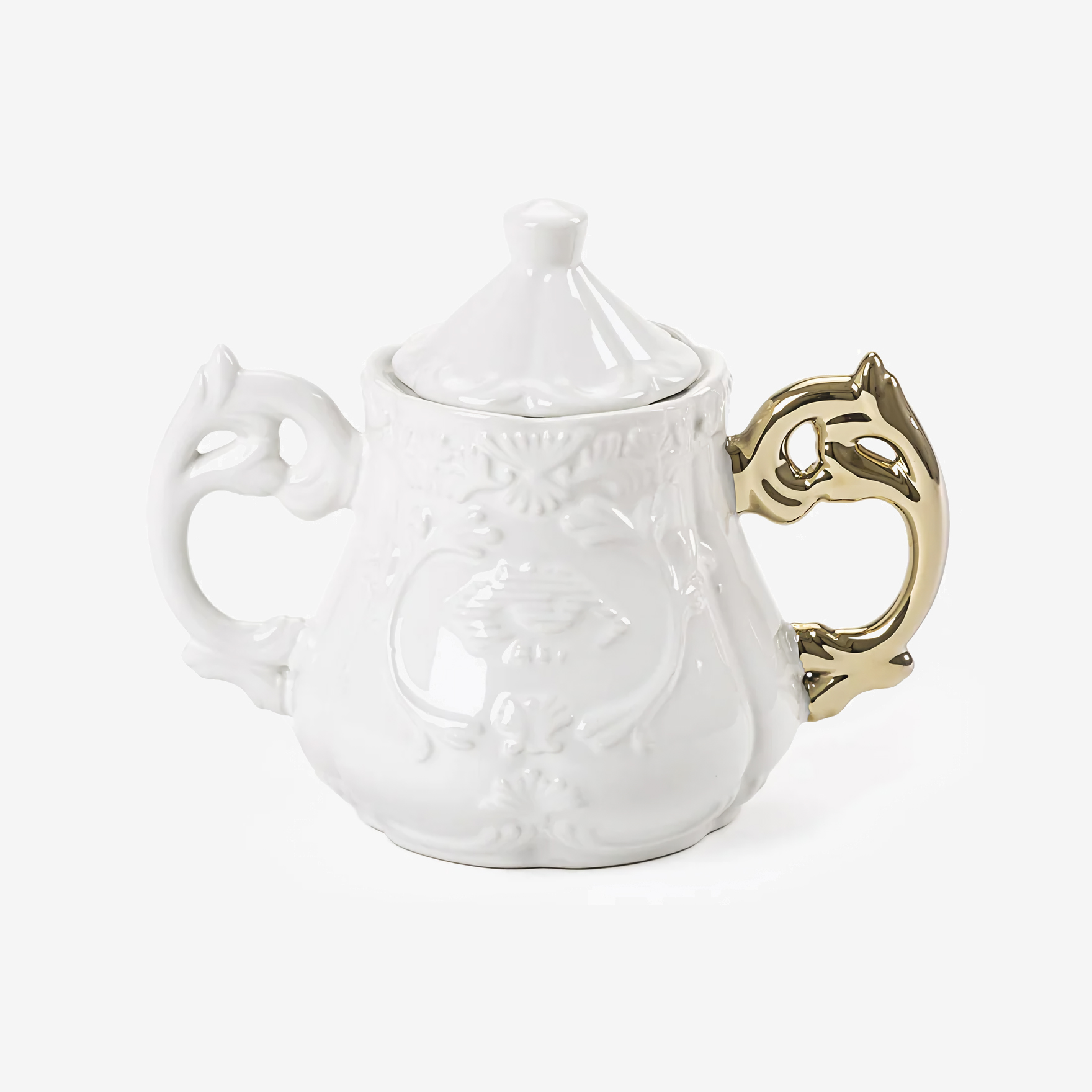 Сахарница Seletti I-Wares Gold I-Sugar выглядит как антикварный предмет посуды в барочном стиле. Элегантная форма, белый объёмный фарфор и позолоченные детали образуют целостный образ I-Wares Gold I-Sugar. Ручки в разных тонах придают сахарнице индивидуальный характер.