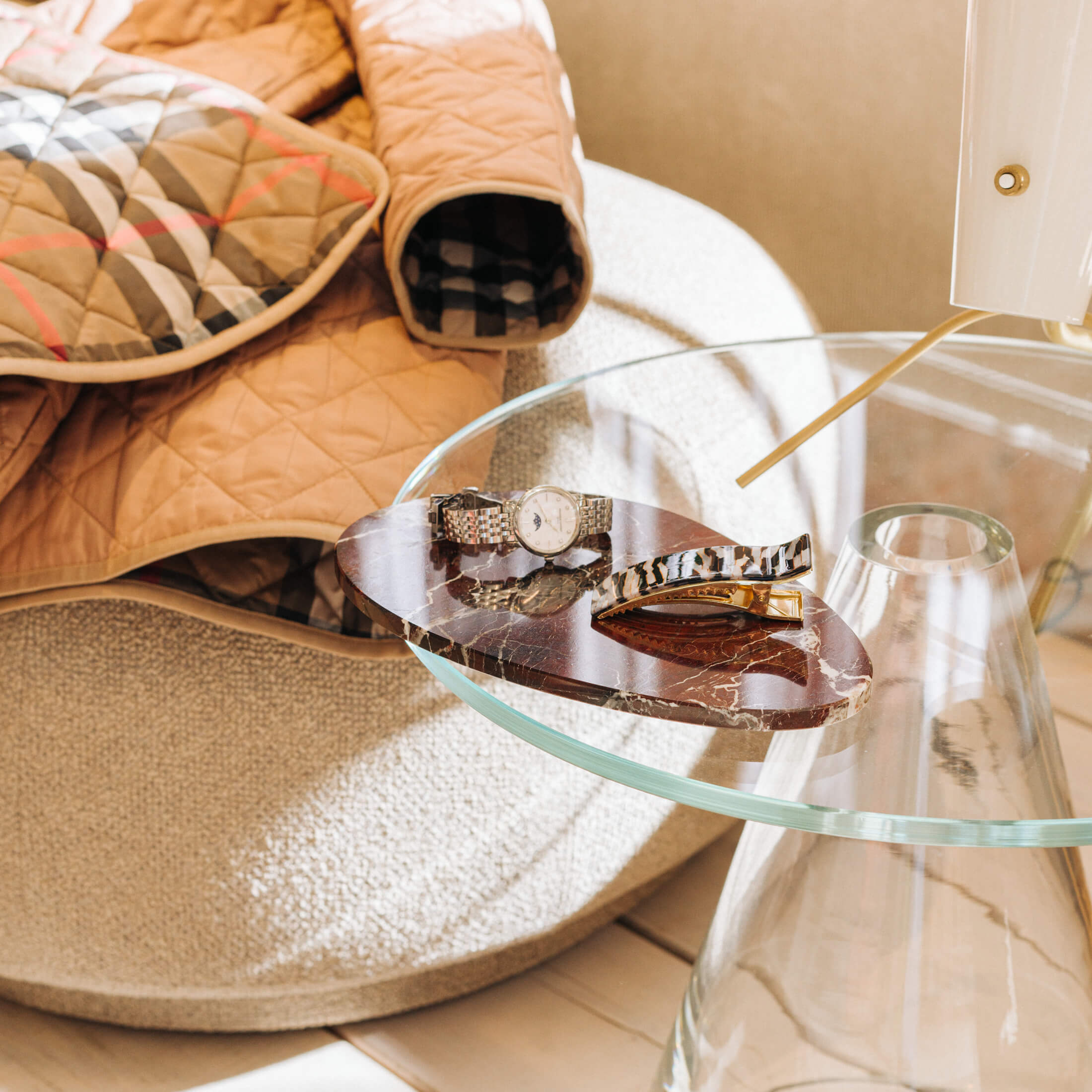 Поднос Vèrde Coppella 1.0 изготовлен из натурального мрамора и наделён изящным природным узором. Округлая форма изделия уравновешивает брутальный внешний вид камня. Поднос выполнен в глубоких благородных оттенках.