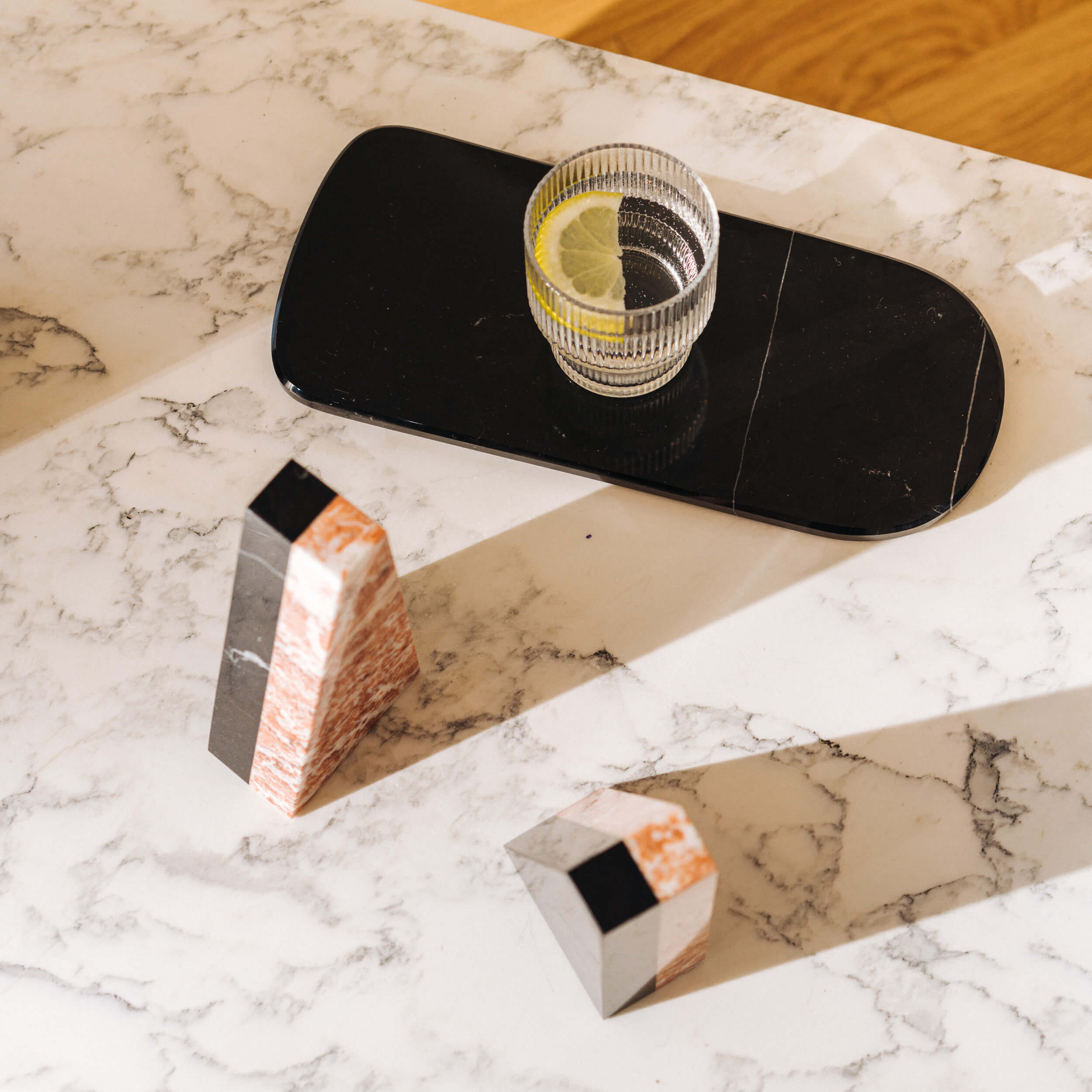 Поднос Vèrde Pagaia 1.0 имеет необычную форму, скруглённую с одной стороны. Использование мрамора чёрного оттенка с практически незаметным узором делает модель универсальной. Поднос выполнен из прочного натурального камня, устойчивого к различным температурам.
