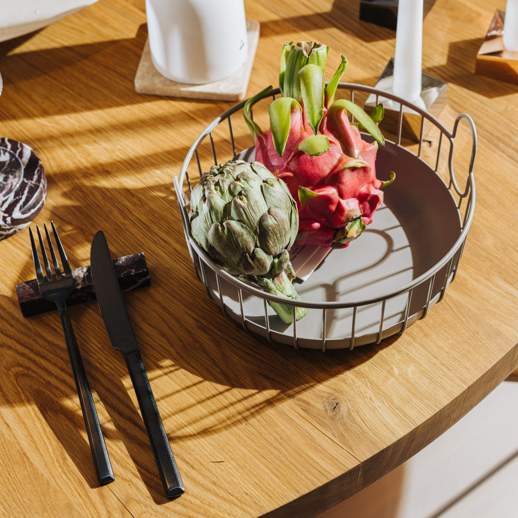 Подставка под приборы изготовлена из натурального мрамора.