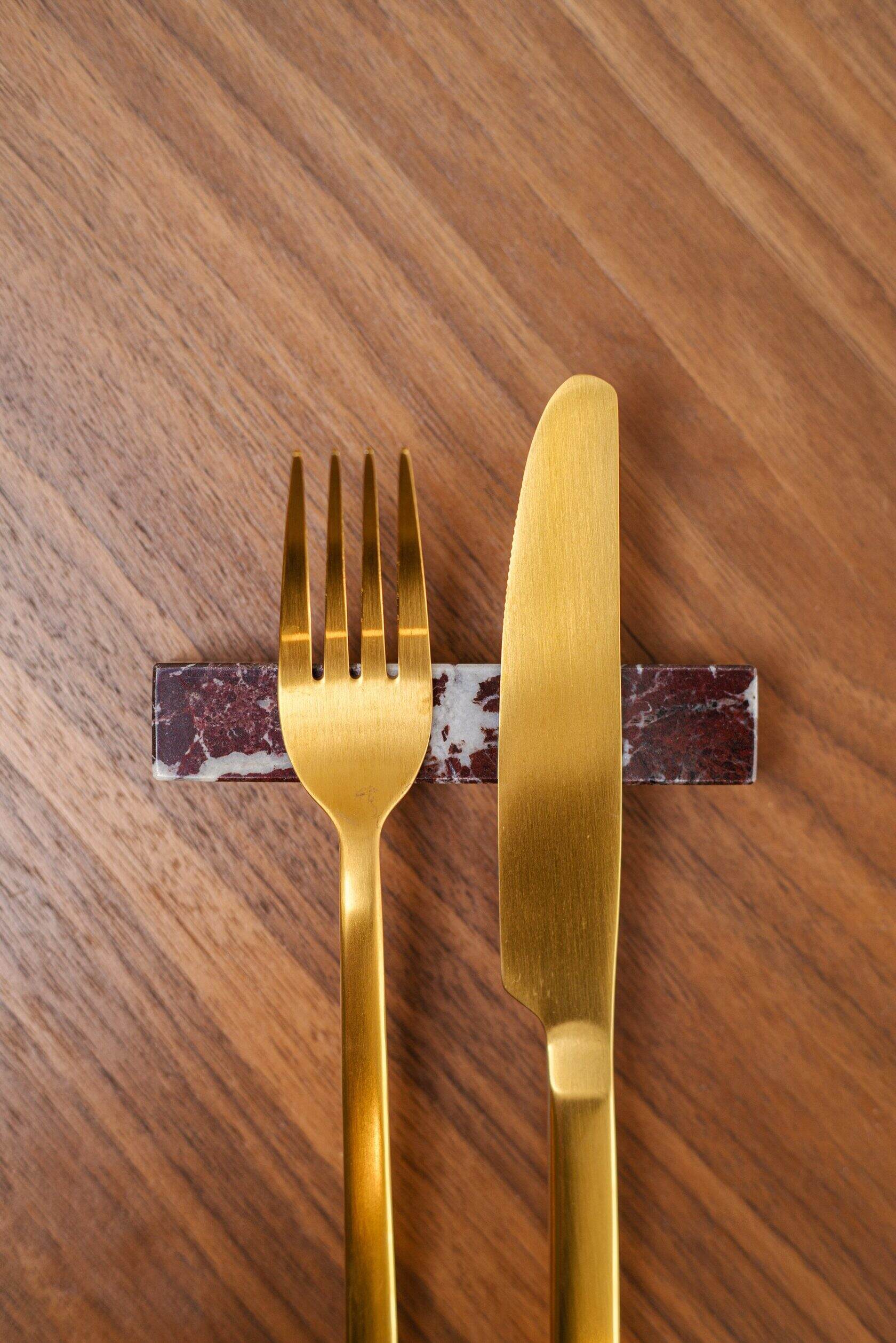 Порт-куто (подставка под приборы) Vèrde Sbarra 2.0 имеет минималистичную прямоугольную форму. Изделие можно использовать для размещения как одного, так и нескольких предметов посуды. Глубокие оттенки подставки выгодно подчеркнут утончённые силуэты вилки и ножа.