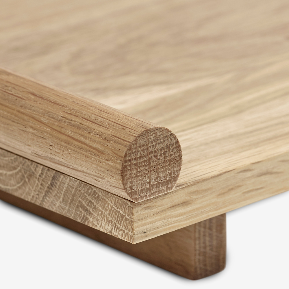 Сервировочный поднос на ножках Tray Oak Ceremony был создан Studio Simple в японском стиле и изготовлен из массива дуба в матовой отделке. Такой поднос отлично подойдет для подачи горячих напитков во время чайной церемонии. Минимализм и простота делают поднос универсальным решением на кухне, а для большего удобства предусмотрены две органично вписанные в общую концепцию округлые деревянные ручки.