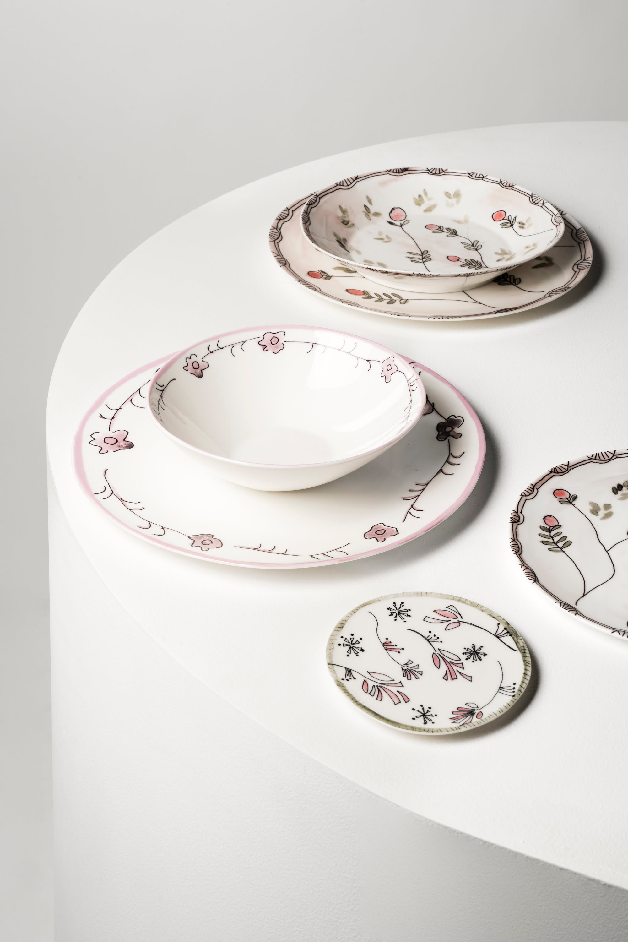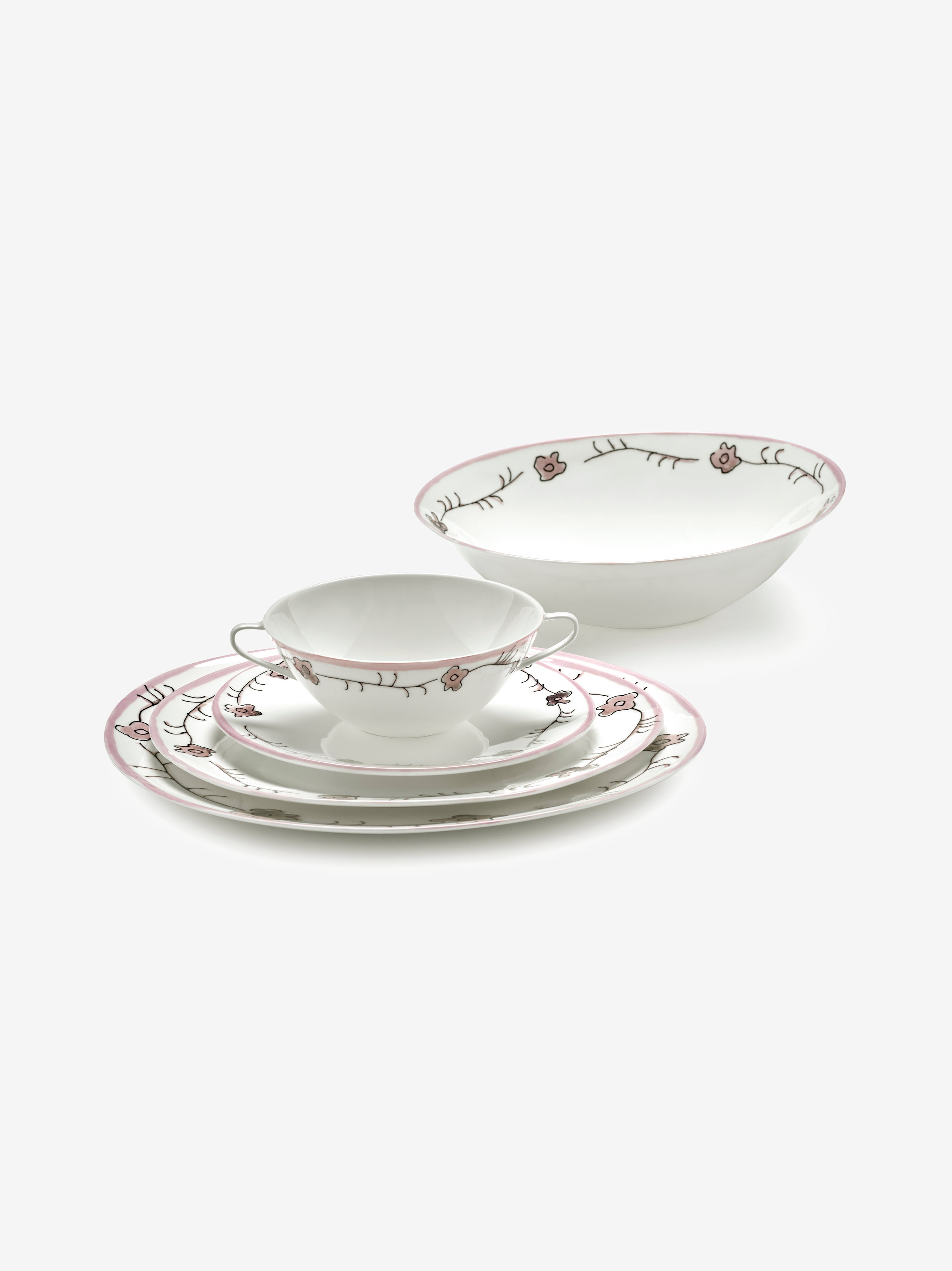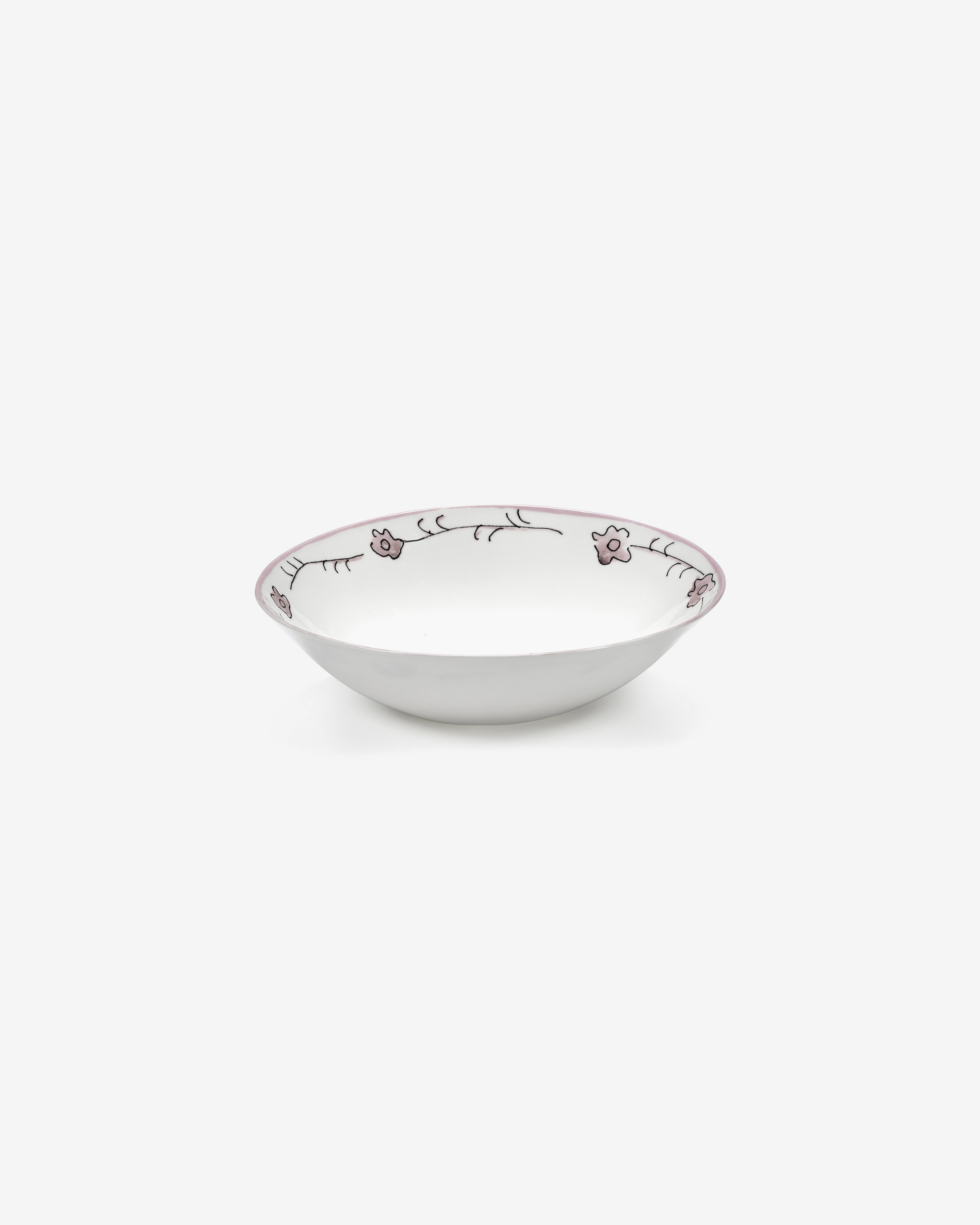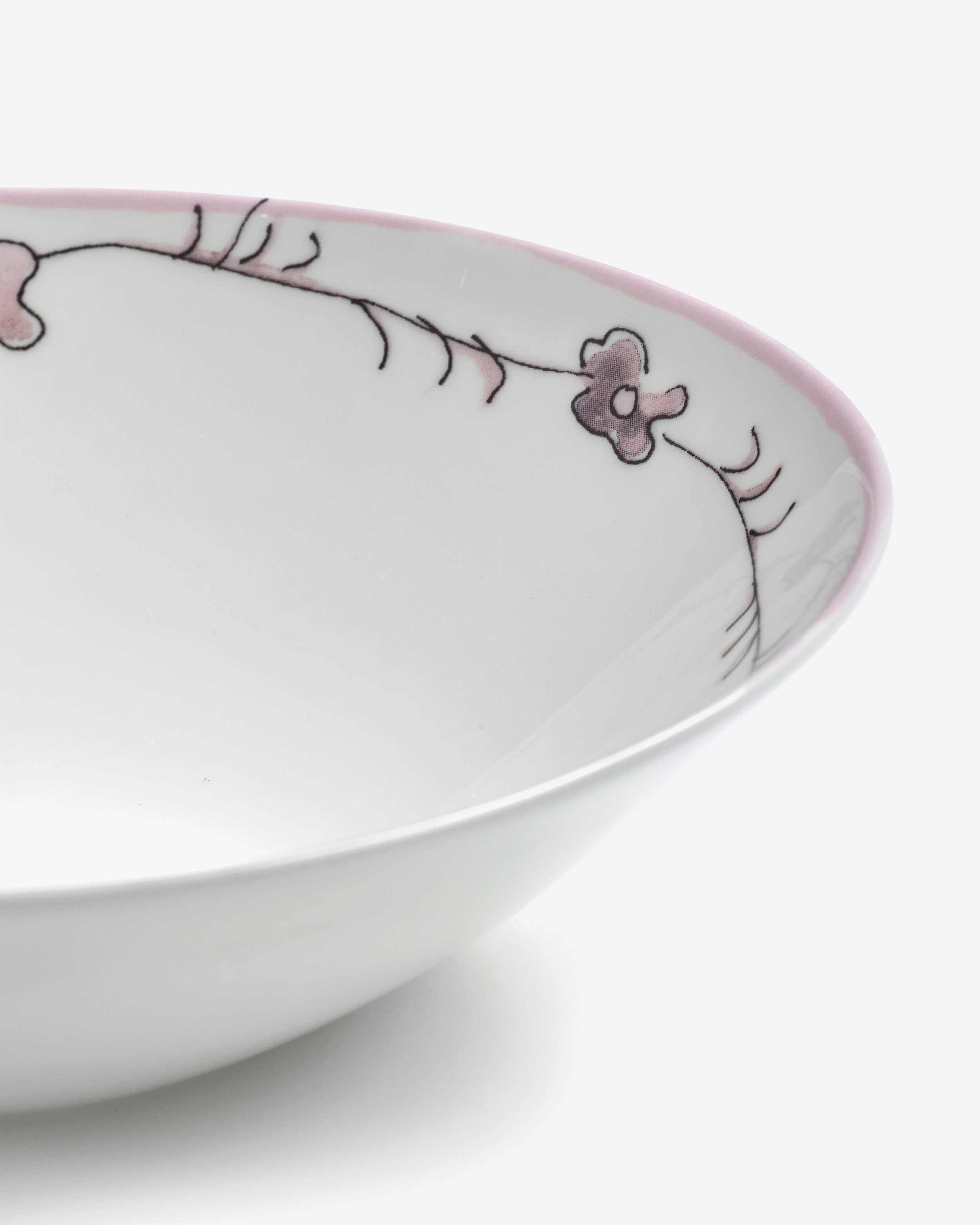 В набор из 2-х глубоких чаш Serax Low Bowl L Dark Viola Midnight Flowers входит минималистичная посуда, способная идеально вписаться в столовую зону современного стиля. Узор в виде веточек с цветами придаёт чашам особое очарование. Изделия дополнены розовой каймой, совпадающей с оттенком орнамента.