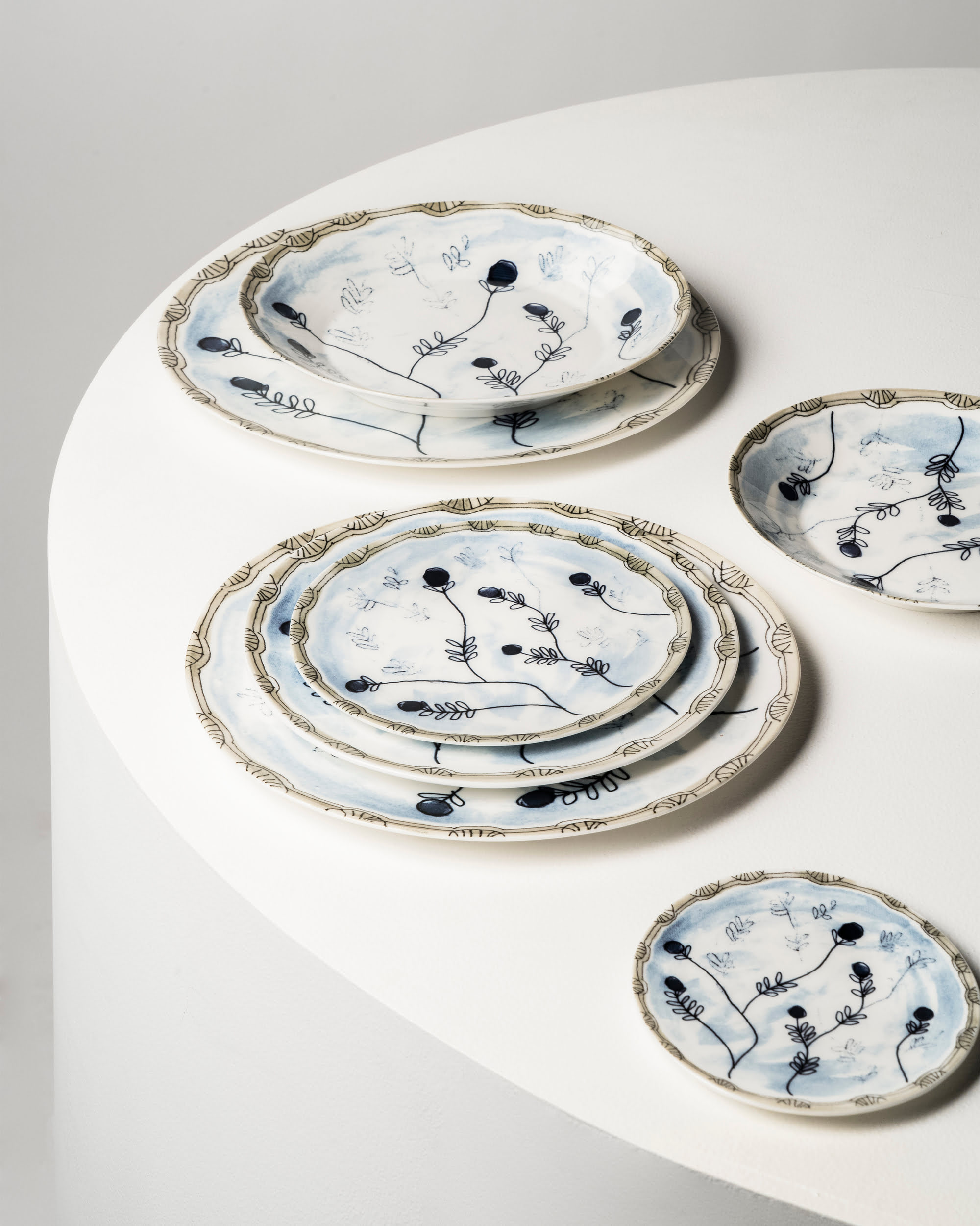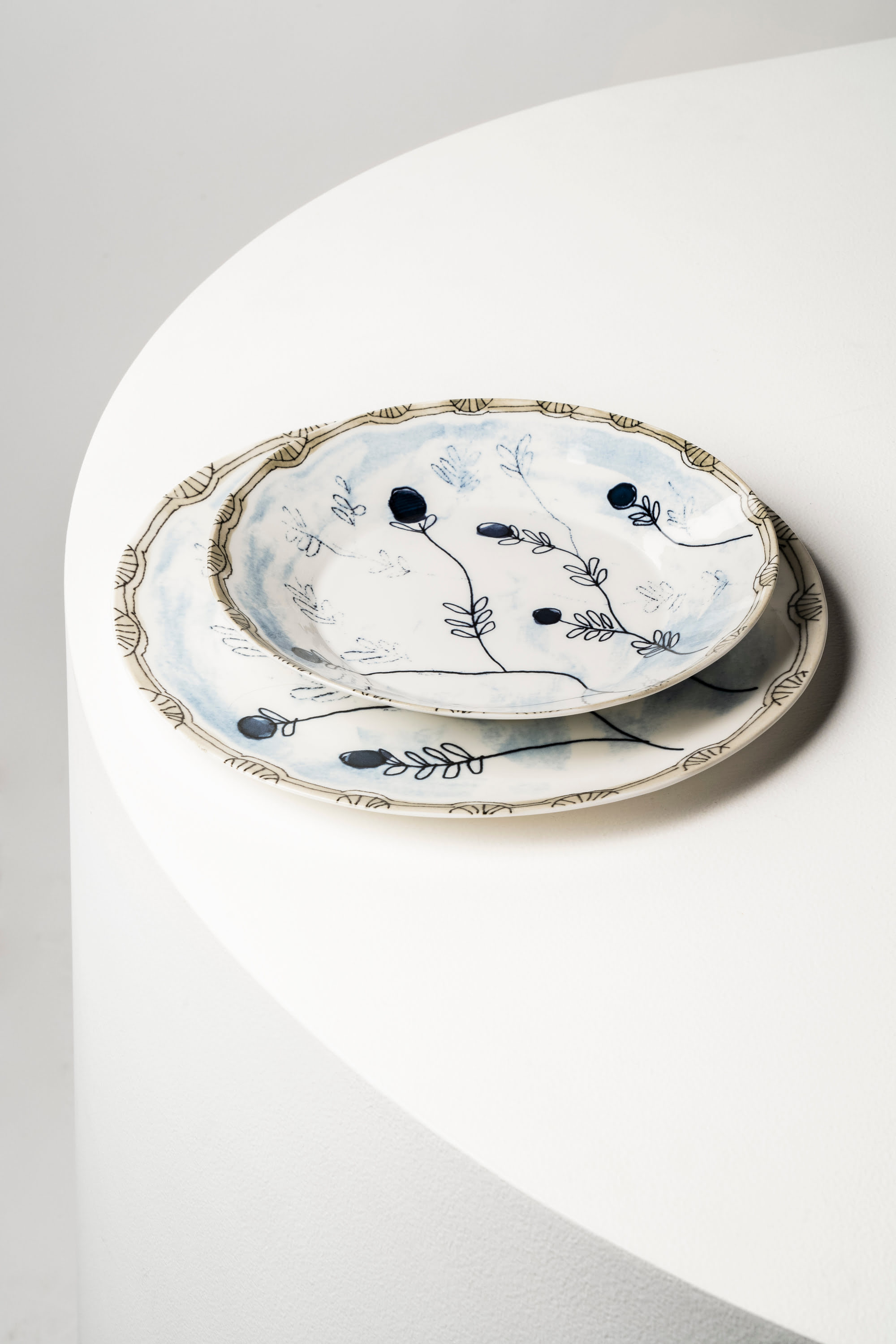 Набор из 2-х тарелок Serax Plate Mirtillo Tea Midnight Flowers можно использовать для сервировки стола или в качестве декора. Цветочный орнамент, нанесённый на поверхность тарелок, выполнен в нестандартном голубом цвете. Практически незаметные отпечатки веточек дополняют узор, но не делают его слишком броским.