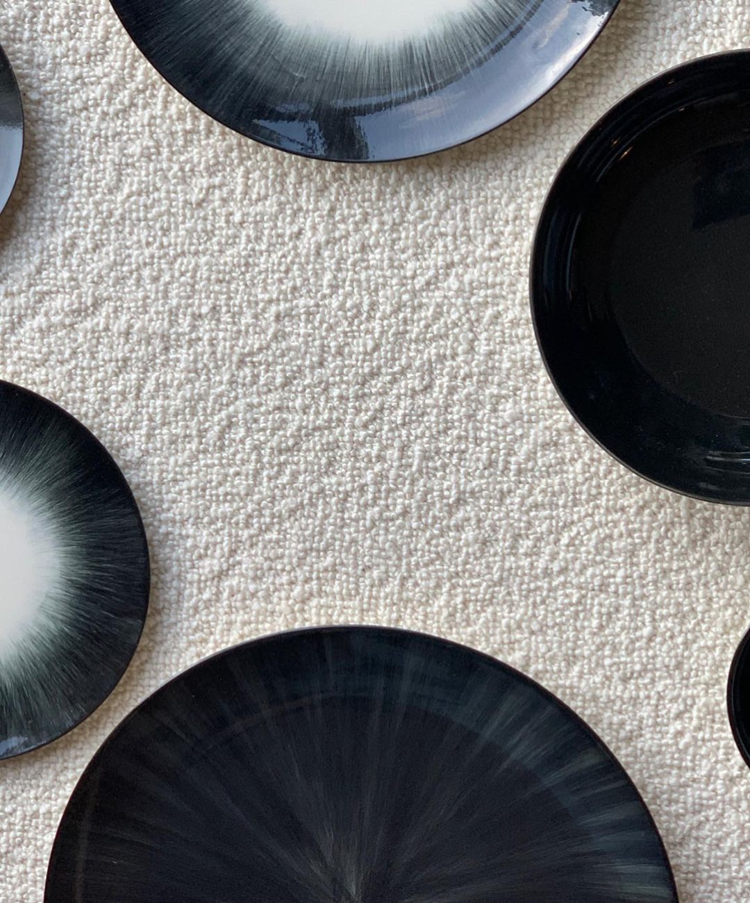 В рисунке блюдца Serax Plate, 17.5, Dé Off-White/Black отражается взаимодействие света и тени. Модель включает варианты с различными орнаментами — от тонкой чёрной растушёвки до плотных широких мазков тёмной краски. Ручная роспись делает каждое блюдце уникальным.