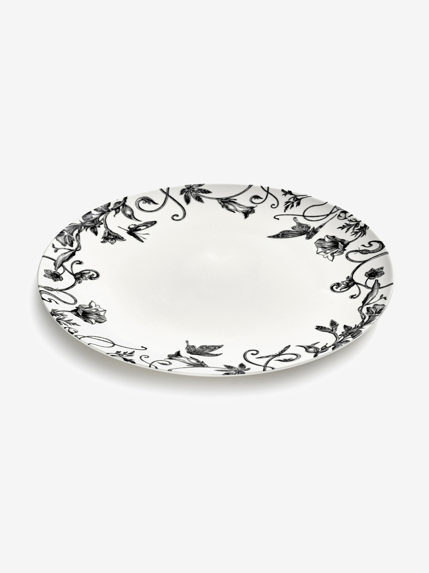 Тарелка Serax Dinner plate floral fantasy white-black Unity превратит каждый приём пищи в прогулку по мистическому саду. Края тарелки украшаются авторской графикой под названием «Floral Fantasy» с тонкими вьющимися стеблями и порхающими бабочками. Сочетание детализированного чёрного орнамента и лаконичного белого оттенка создаёт вневременной элегантный образ предмета посуды.