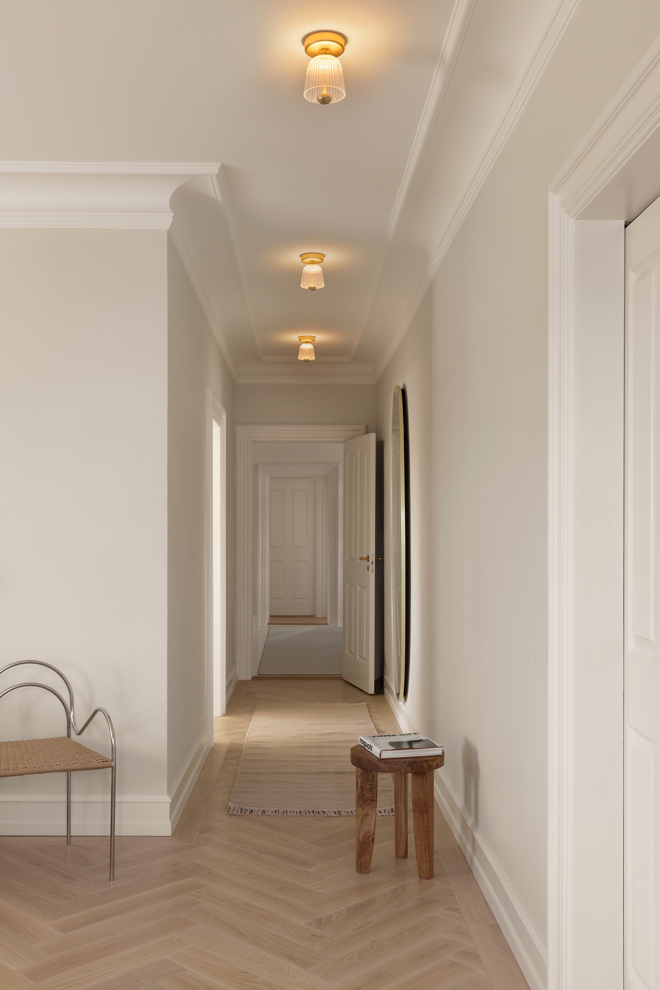 Потолочный светильник Nuura Asteea Ceiling — изящное дизайнерское решение, не перегружающее пространство. Элегантный плафон светильника напоминает только что распустившийся цветок колокольчика. Модель с прозрачной рифлёной поверхностью дополняется ненавязчивыми латунными элементами, придающими Asteea Ceiling благородный характер.
