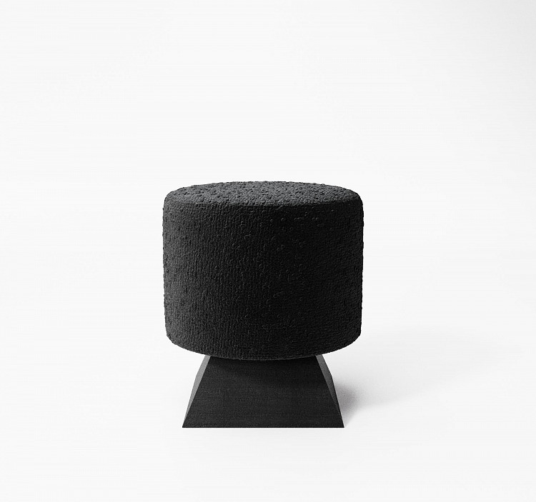 Пуф Modénature Alfie Pouf от Olga Silanteva представляет собой круглый модуль с мягкой подушкой и массивным деревянным основанием. Основание имеет трапециевидный профиль и может быть гладким или с рельефной фактурой. В одной из версий между подушкой и основной опорой добавлена тонкая деревянная окантовка. Обивка выполнена из плотной ткани в темном или светлом оттенке.