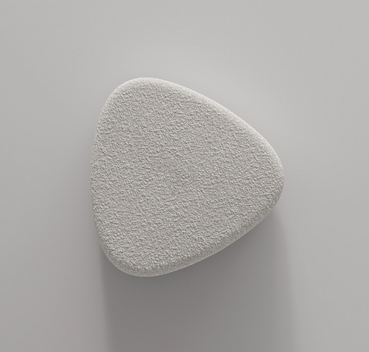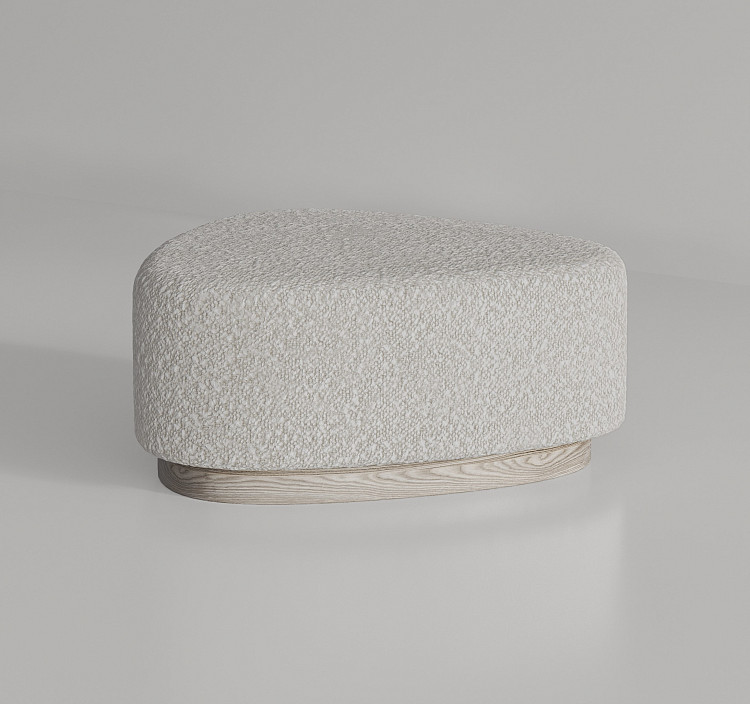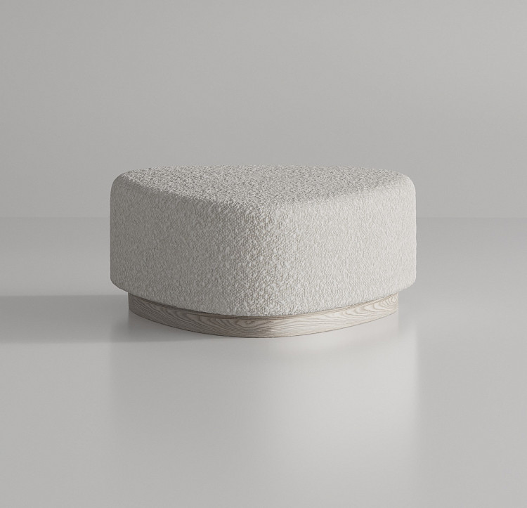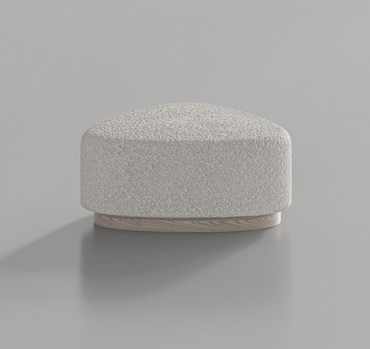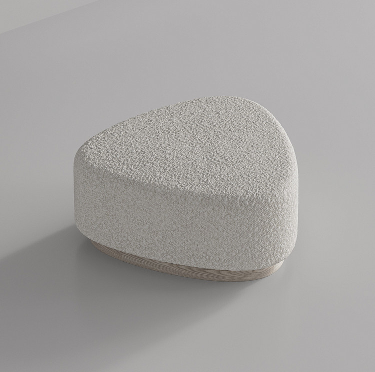Пуф Modénature Imagine Pouf от Yana Bykova, как и кушетка Imagine, имеет мягкие обтекаемые очертания. Сверху он выглядит как равносторонний треугольник со сглаженными вершинами. Обивка выполнена из светлой ворсистой ткани. Низ пуфа обрамляет плоское деревянное основание натурального оттенка.