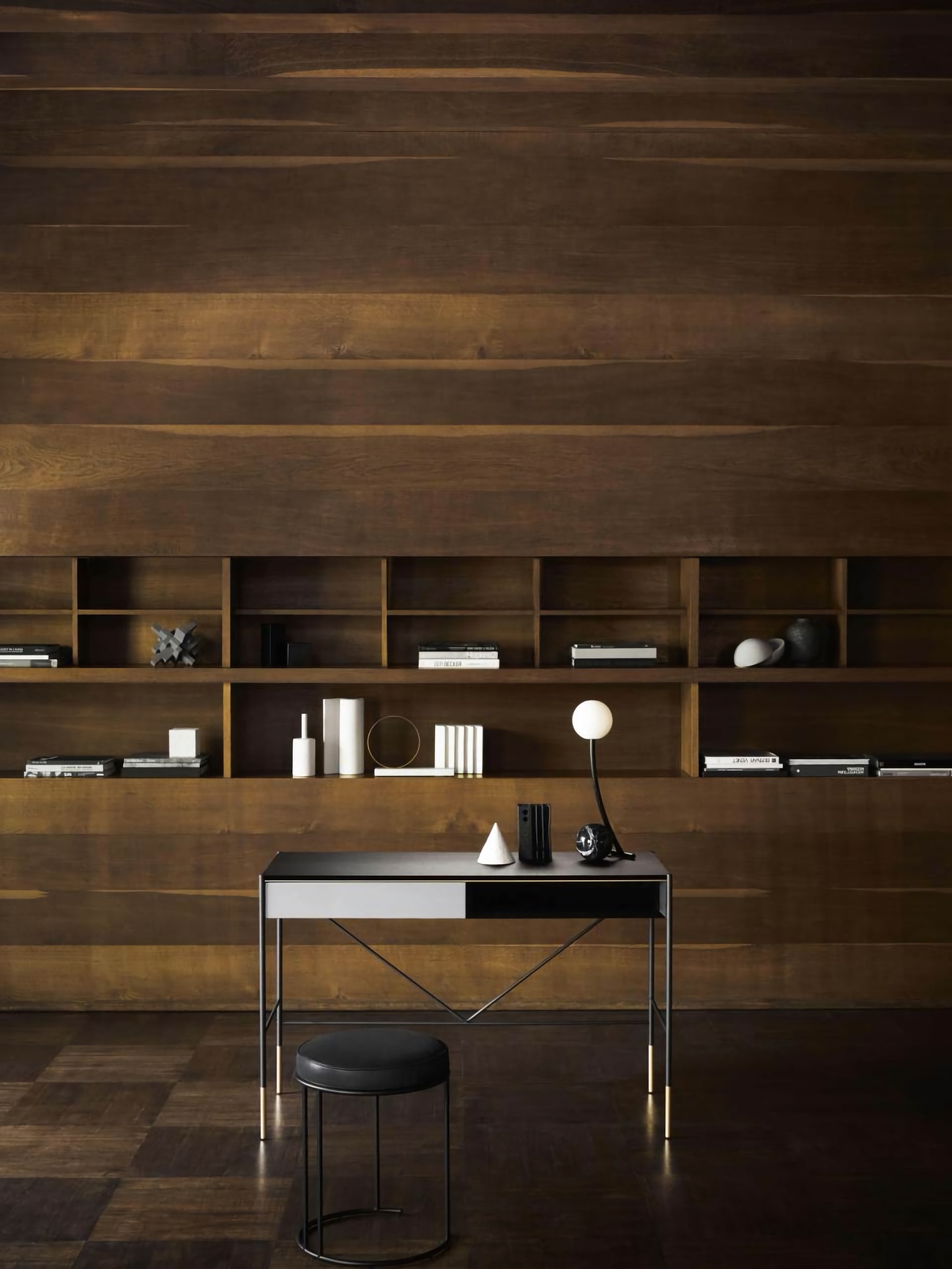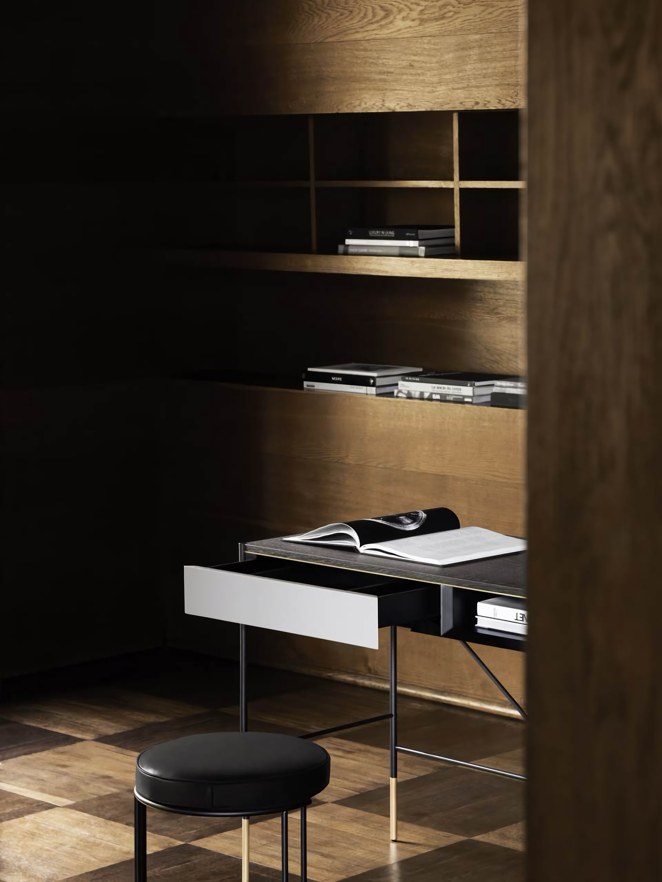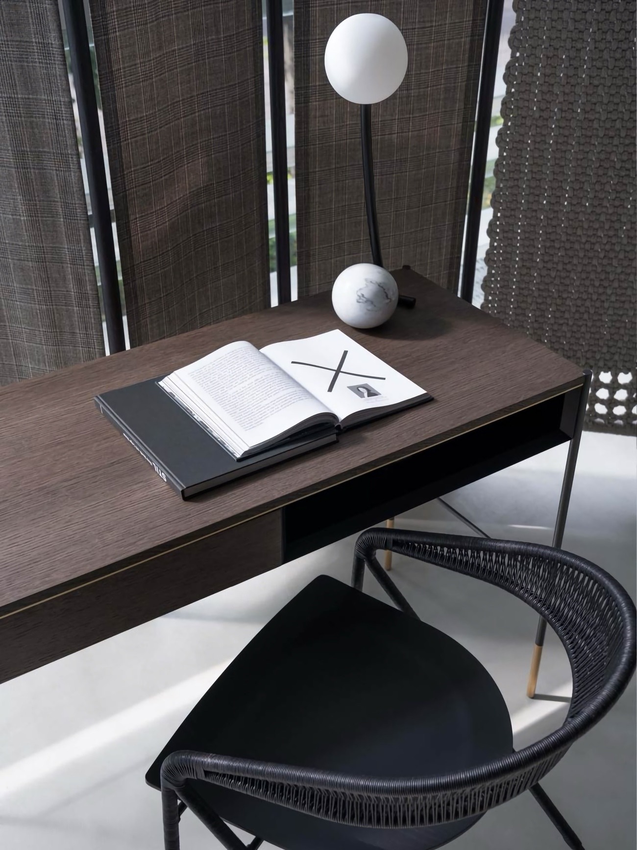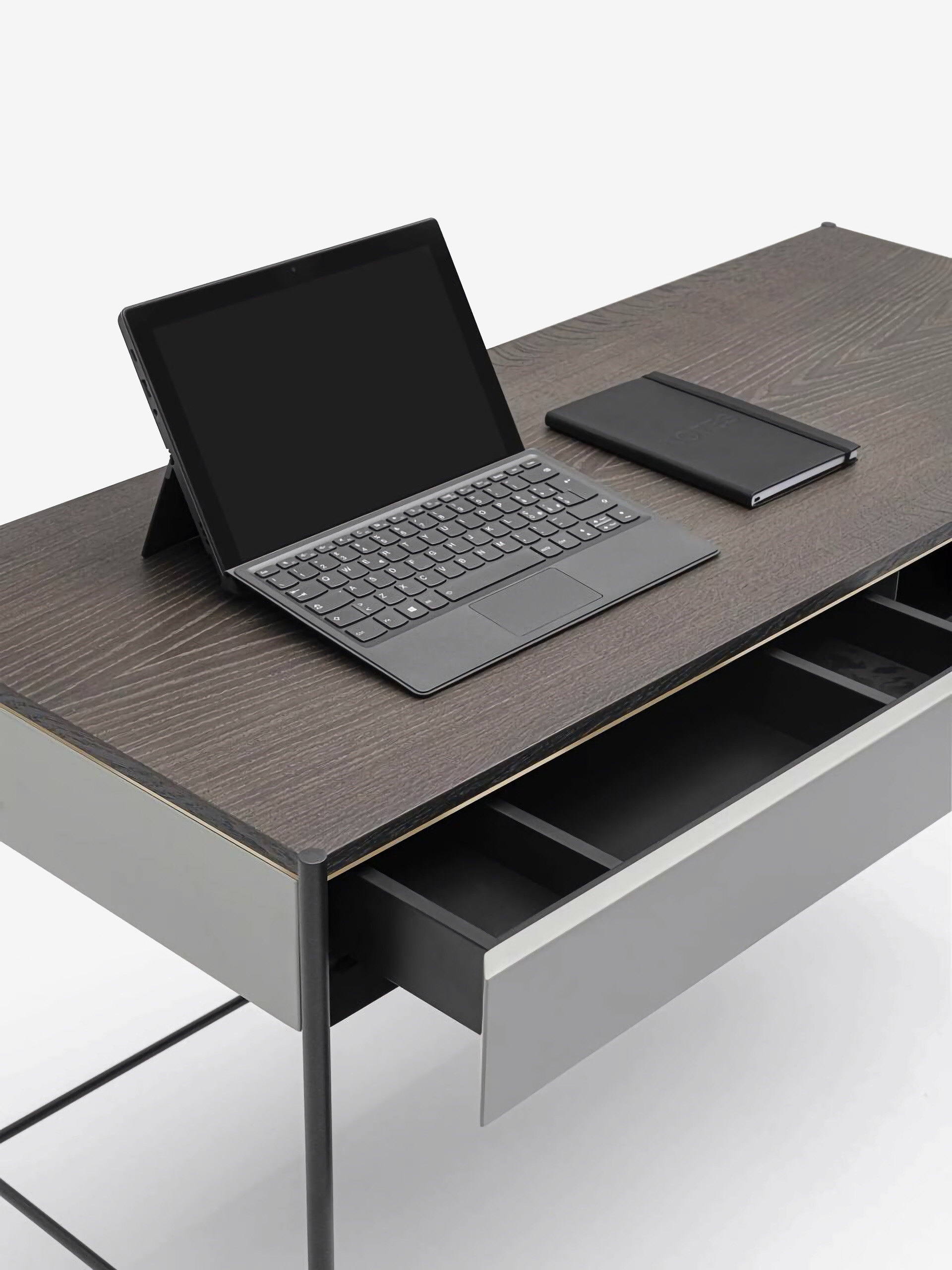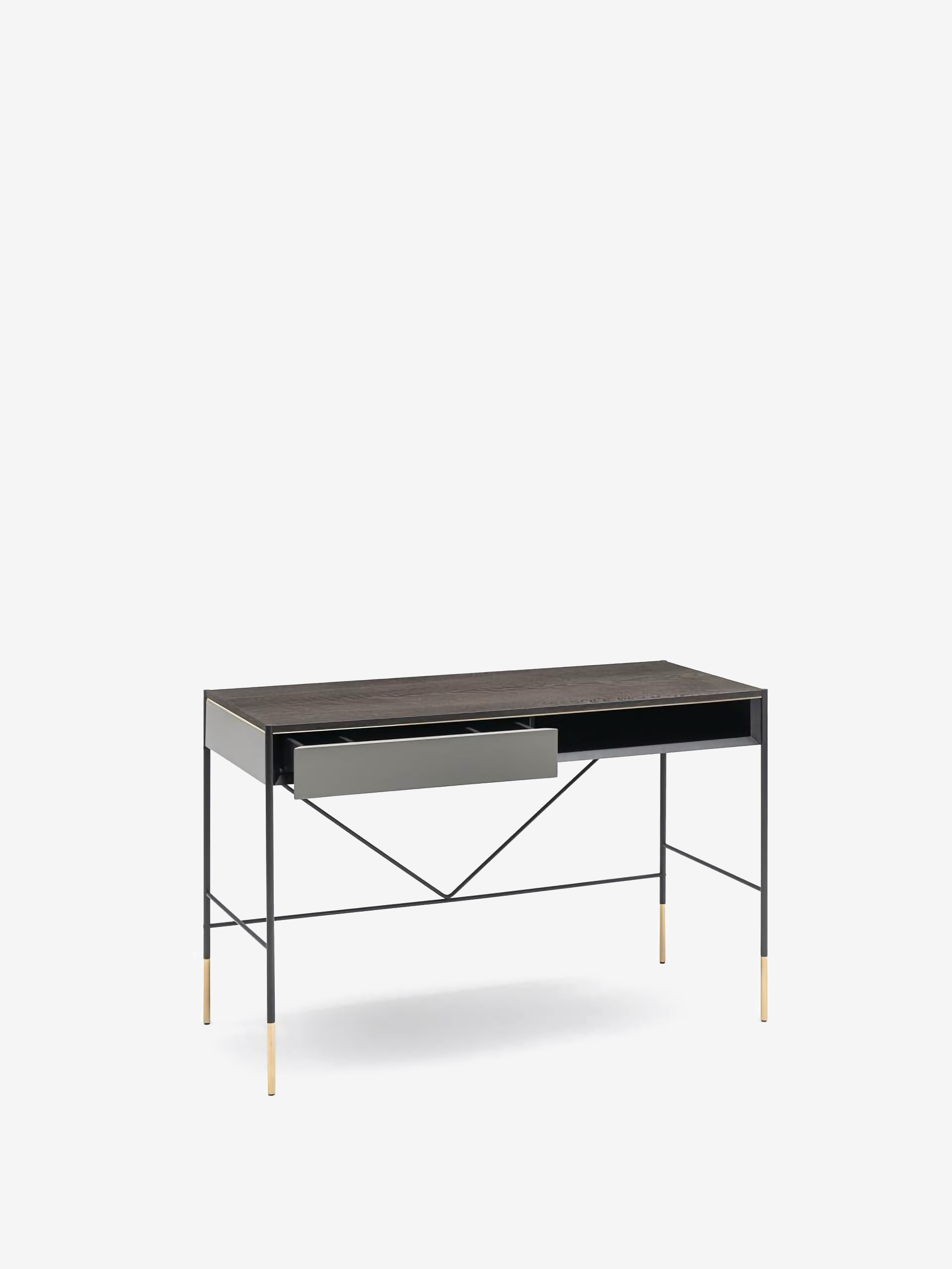 Письменный стол Living Divani Era Scrittoio привносит в образ классического предмета мебели нотки современного минимализма. Длинная прямоугольная столешница подчёркивает утончённость графичного металлического каркаса модели. Компактный выдвижной ящик Era Scrittoio делает стол высокофункциональным, но при этом не перегружает его элегантный облик.