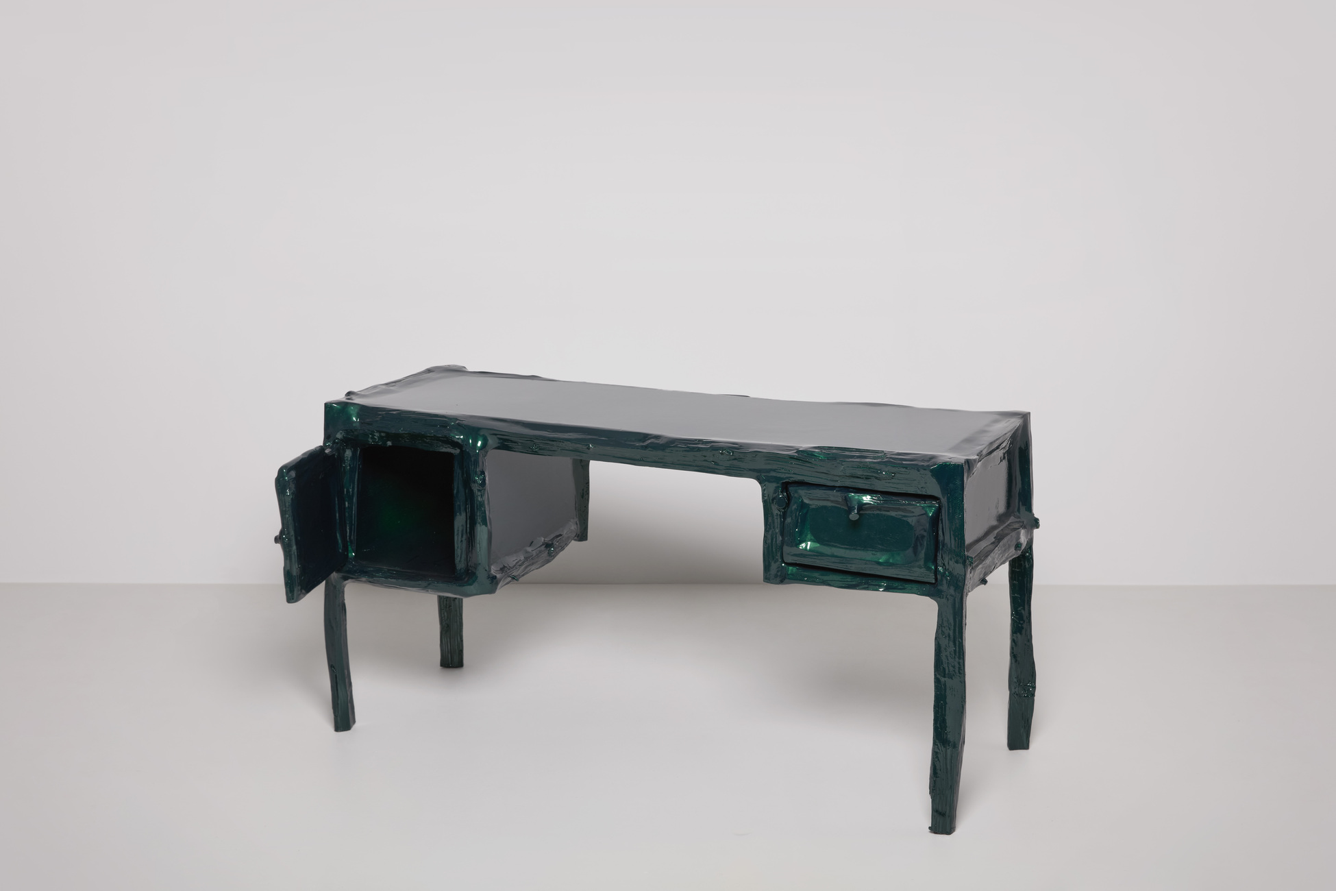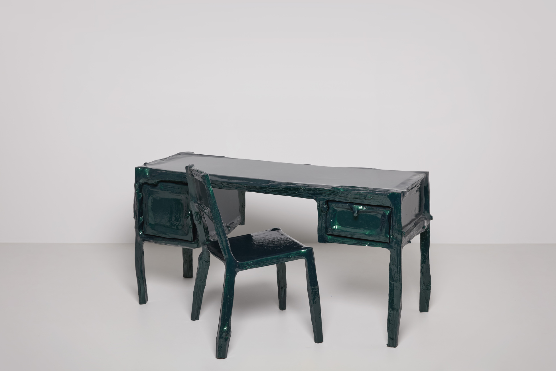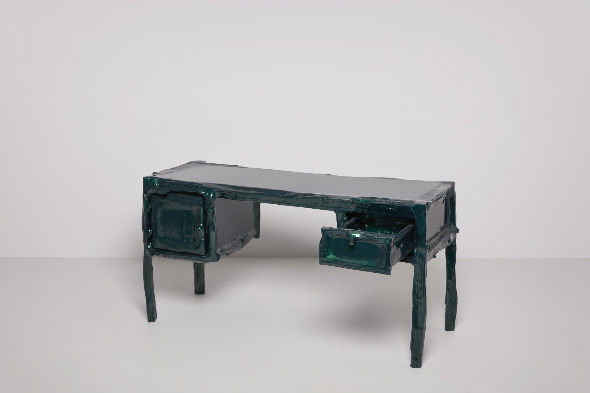 Письменный стол Teun Zwets Splitted Desk Metallic — предмет мебели, в котором первобытная энергия дерева встречается с холодным индустриальным блеском цветного покрытия. Массивный письменный стол привлекает внимание своей динамичной фактурой с намеренно необработанными краями. Использование металлизированного финиша делает Splitted Desk Metallic более сдержанной, но в то же время выразительной моделью.