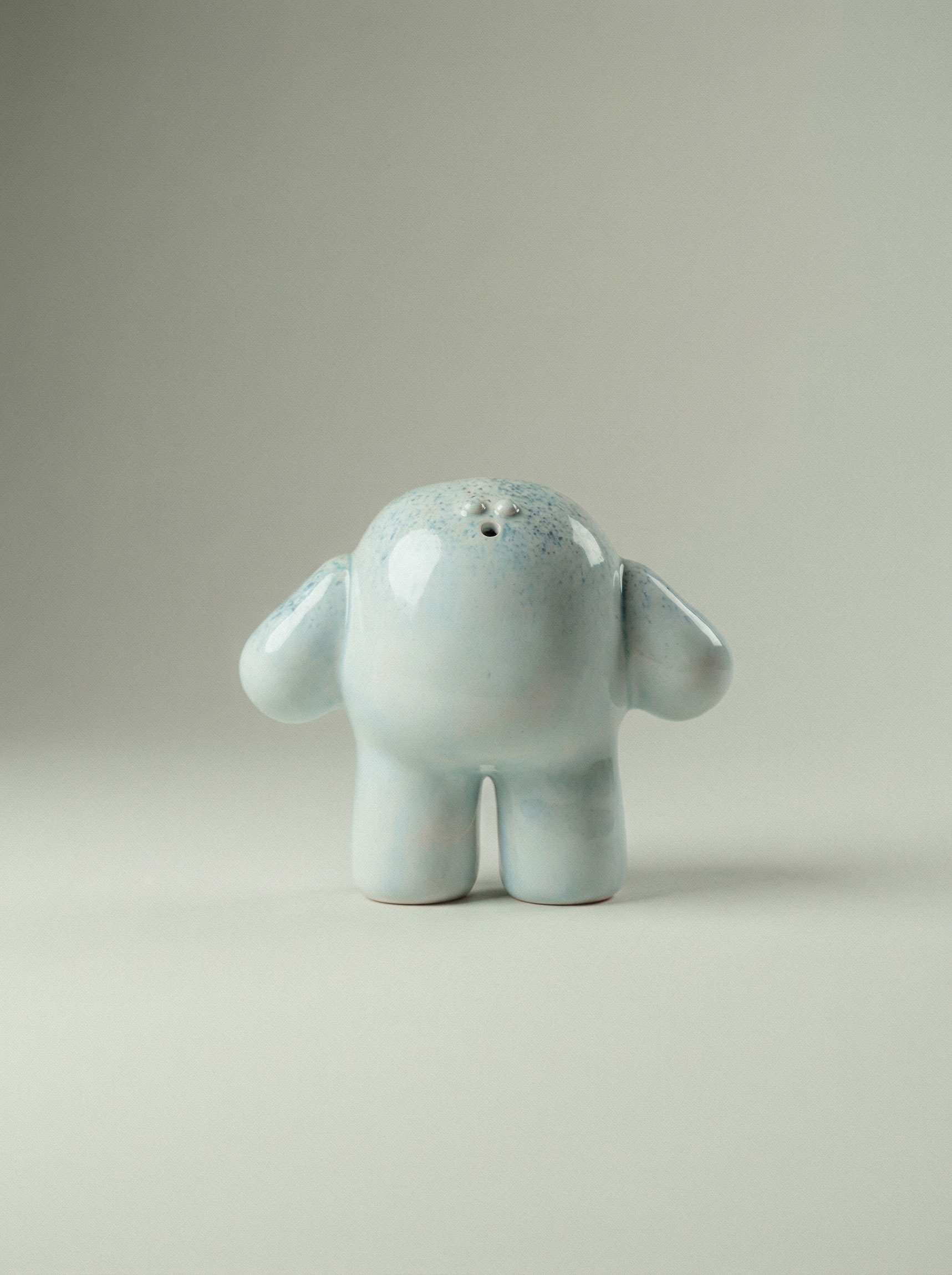 Скульптура Blob Dewdrop — хранитель детских снов, изготовленный из покрытого глазурью фарфора. Мягкое тело статуэтки покрыто брызгами голубого цвета, напоминающими капли первой росы. Слепленные вручную глаза и рот оживляют скульптуру Blob Dewdrop, наделяя её индивидуальным характером.