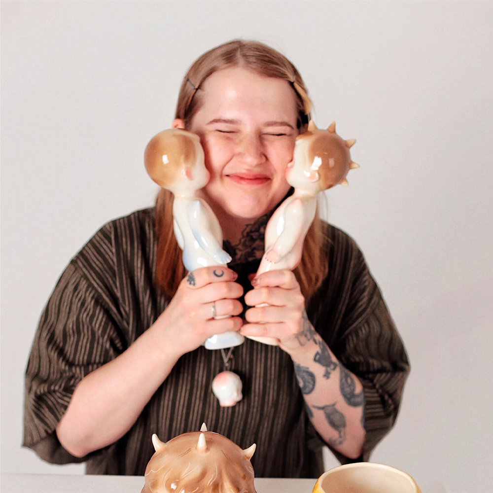 Скульптура Лыжник сине-оранжевый — арт-объект, вызывающий ностальгичные чувства. Выполненное из полуфарфора изделие притягивает взгляд своей колористической смелостью: глубокий небесно-голубой цвет шапочки и комбинезона в кокетливый белый горошек идеально дополняется сочным, почти апельсиновым оттенком куртки. Глянцевая глазурь подчёркивает гладкость полуфарфора, создавая на поверхности скульптуры живые блики.