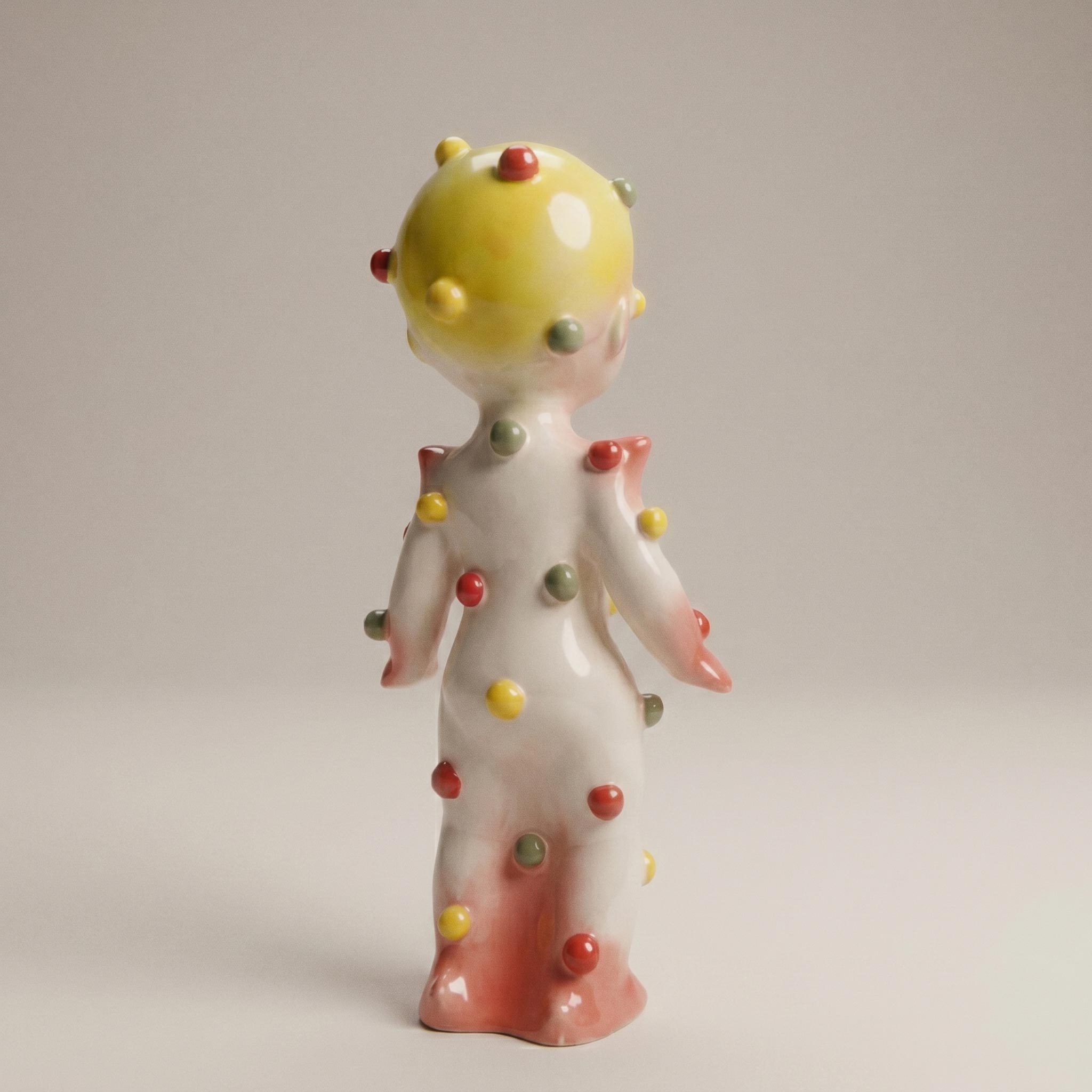 Скульптура Семён Скитлз наполнит пространство детской комнаты магией цвета. Озорная фигурка повторяет очертания советской куклы. Поверхность фарфорового малыша покрыта разноцветными горошинами, добавляющими предмету декора сюрреалистичной глубины.
