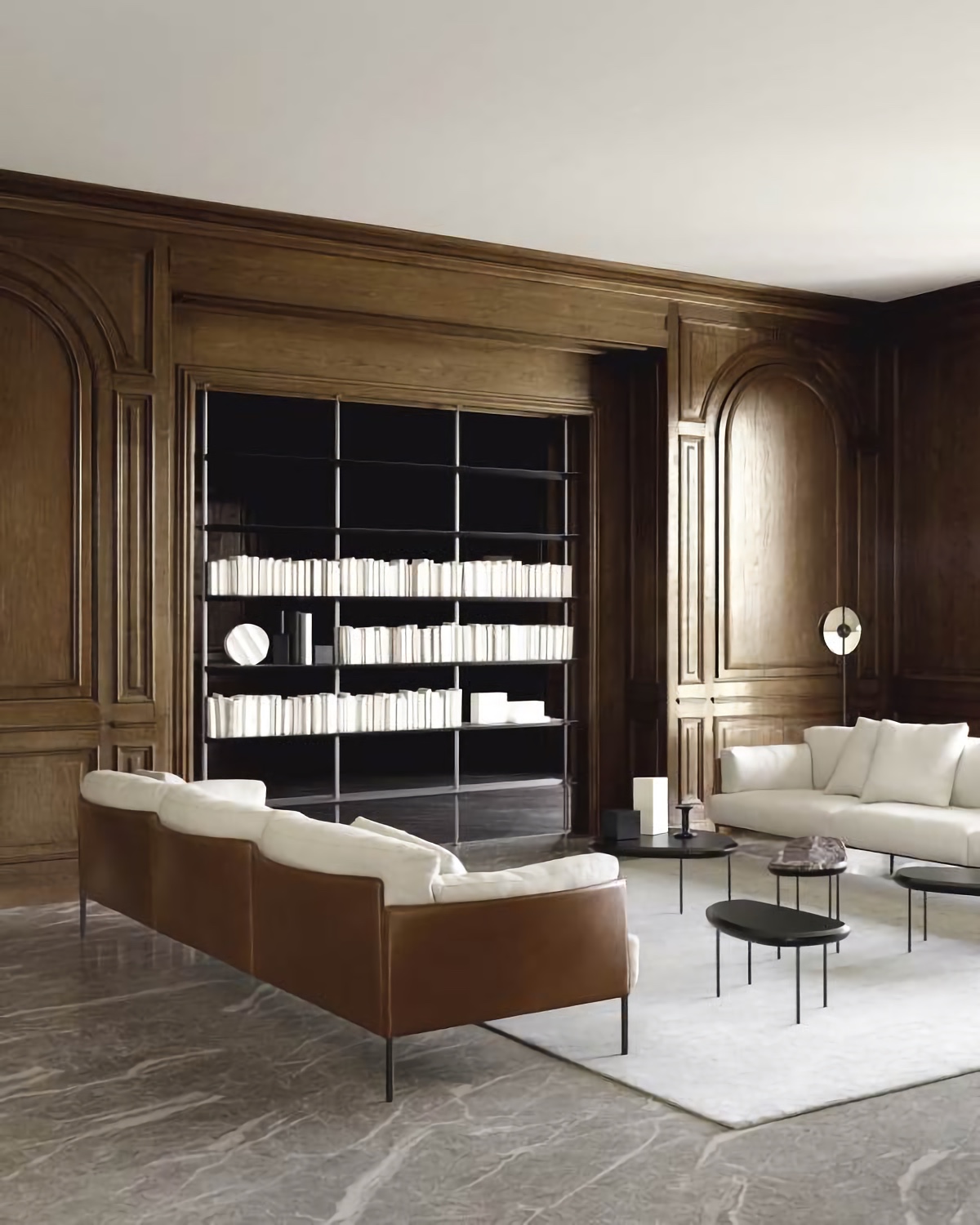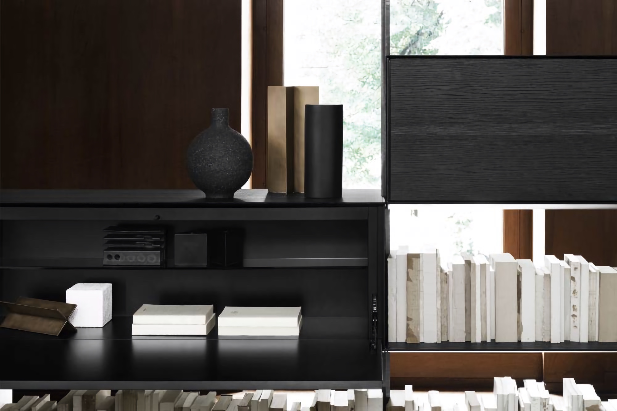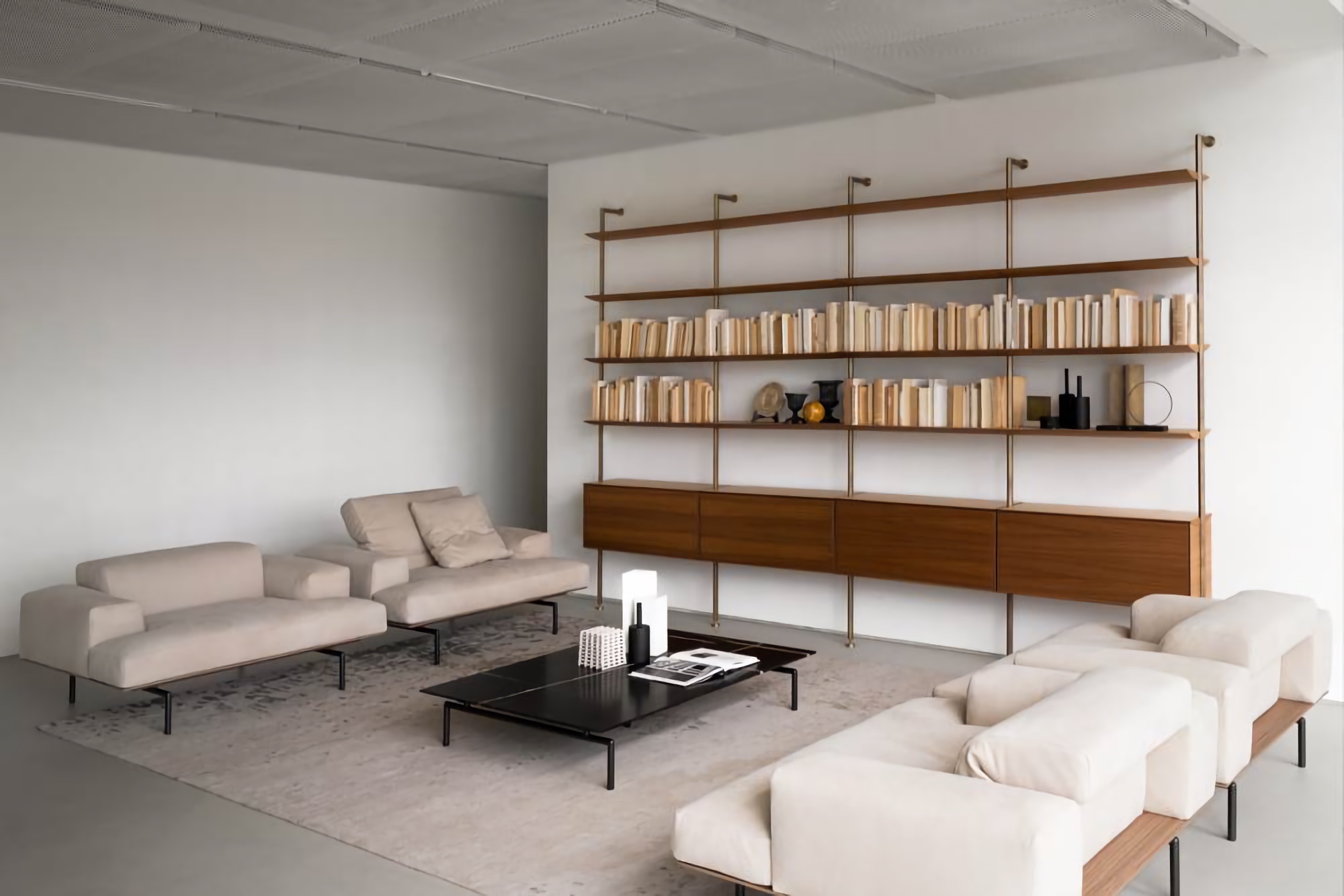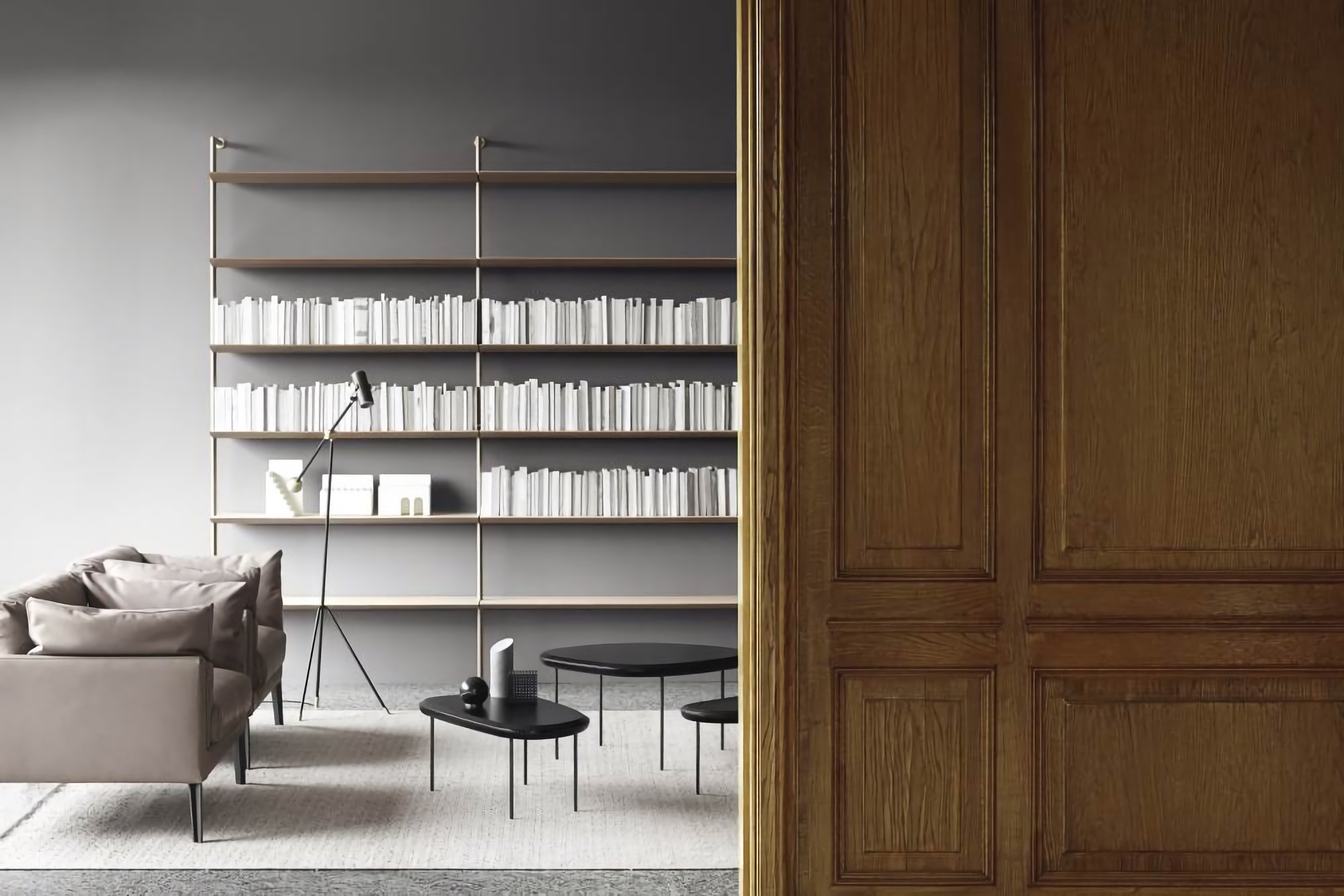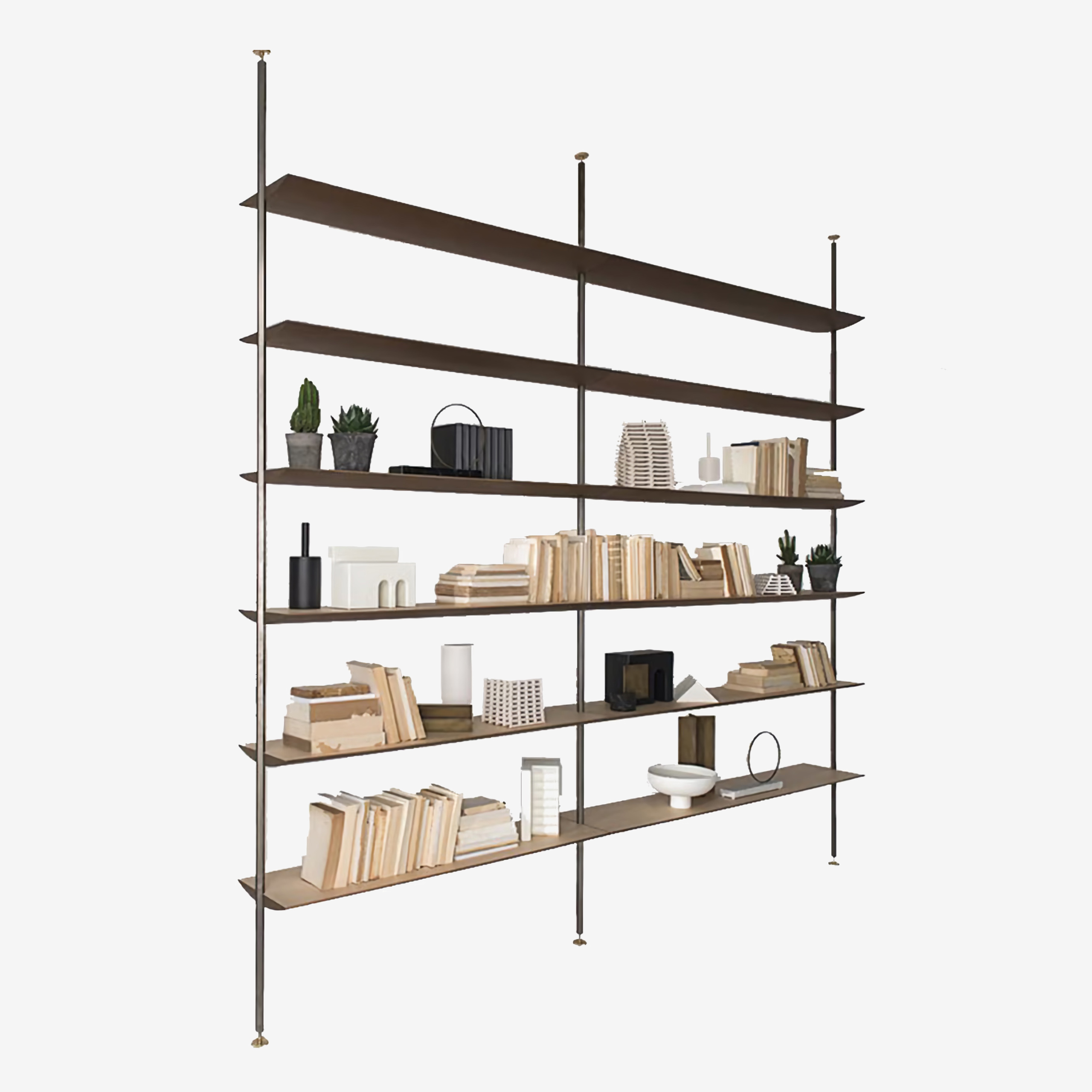 Стеллаж Living Divani Sailor вдохновлён миром морской навигации и парусного спорта. Высокий стеллаж, крепящийся к потолку, выступает не просто как предмет мебели для хранения, но и как мощный инструмент зонирования пространства. Планки из стали делают Sailor прочным, а полки из массива дерева подчёркивают его графичность.