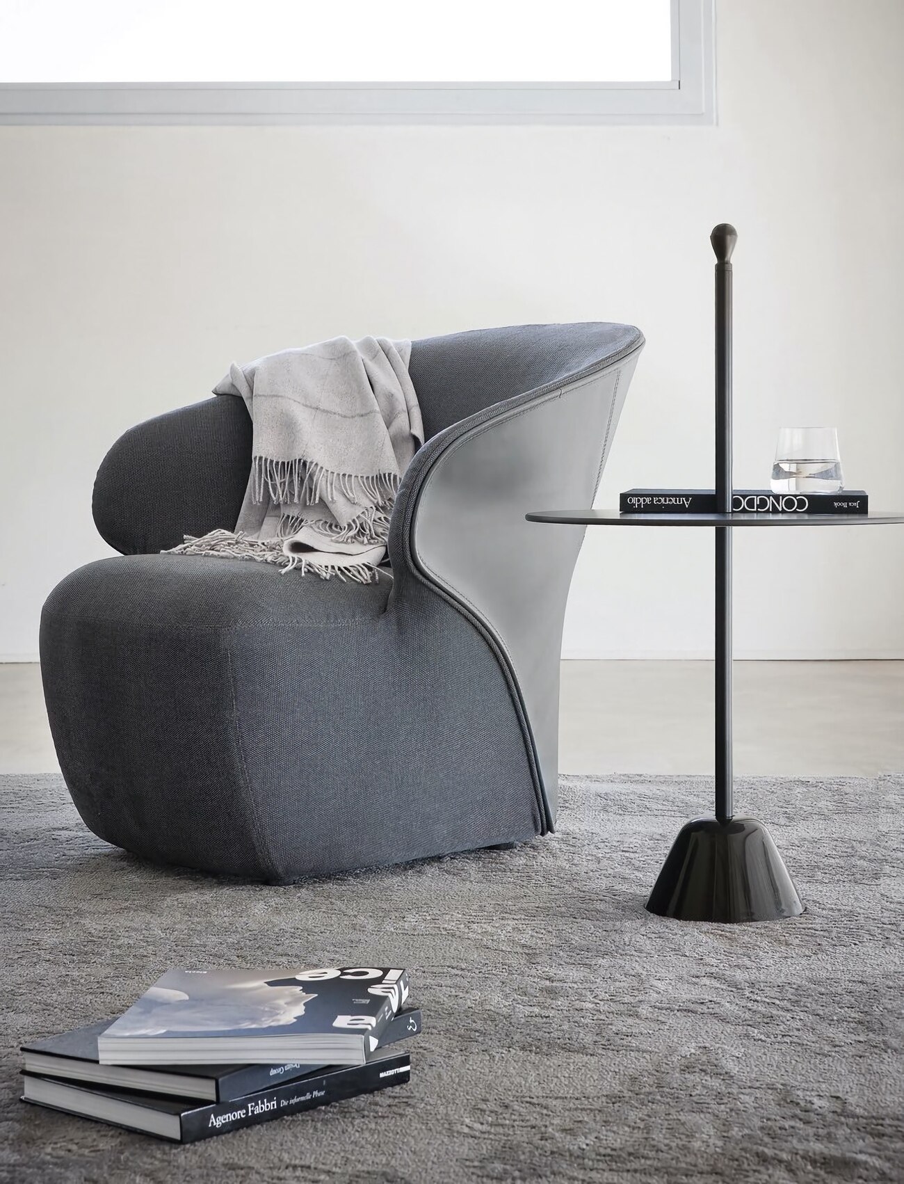 Приставной столик Zanotta Servomuto входит в коллекцию «Servi», переосмысляющую силуэты бытовых аксессуаров. Дизайн Servomuto вдохновлён силуэтом садового зонтика. Массивное полипропиленовое основание столика делает конструкцию устойчивой, но при этом лёгкой и мобильной.