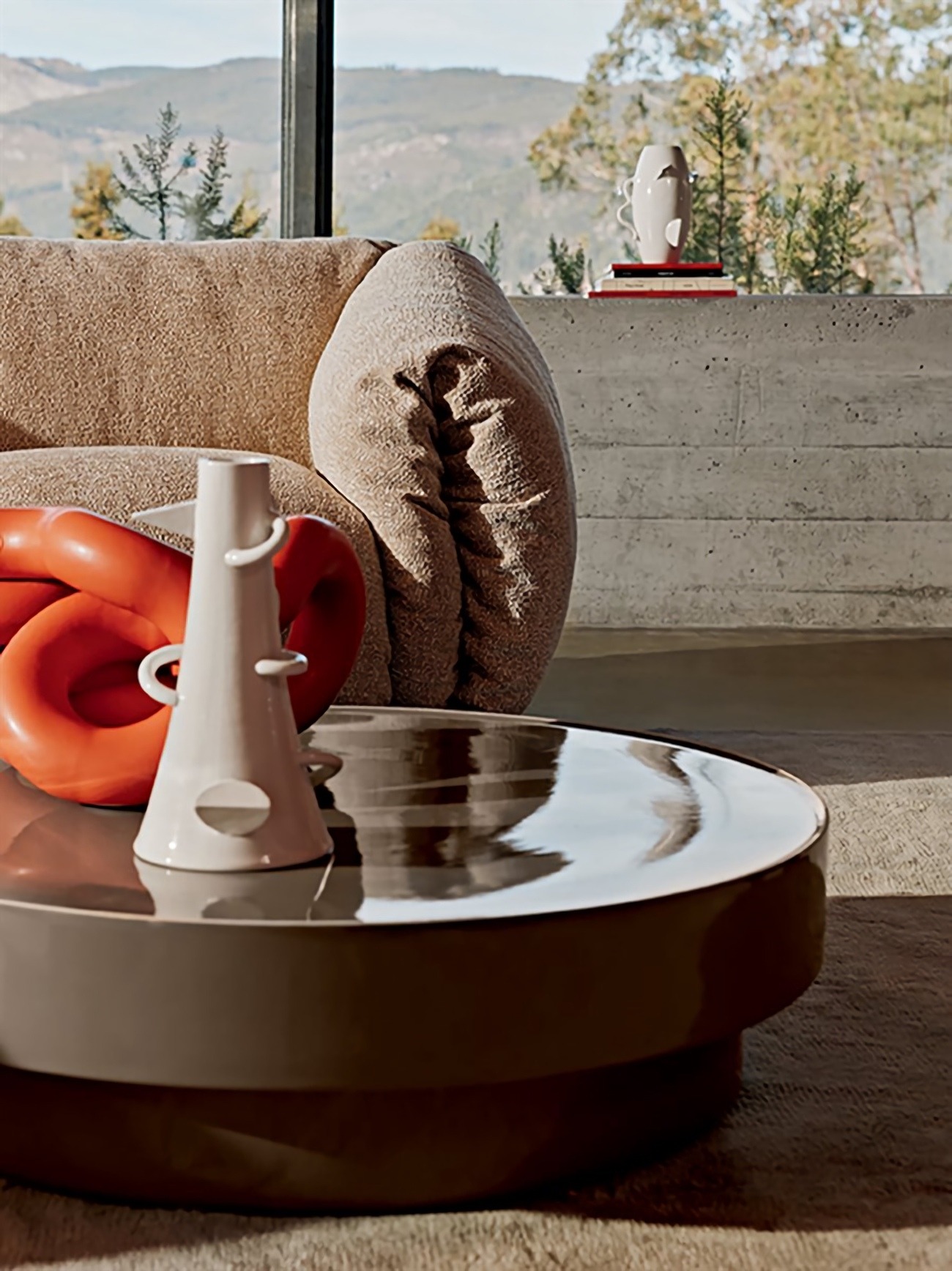 Журнальный столик Zanotta Ta.Ba.Ce. объединяет древнее искусство керамики и актуальный промышленный дизайн. Ключевой декоративный элемент стола был вдохновлён неокрашенным шероховатым основанием ваз, остающимся в месте контакта с печью при обжиге. Основным материалом столика выступает тонкий фарфоровый керамогранит, славящийся своей прочностью и устойчивостью к внешним воздействиям.