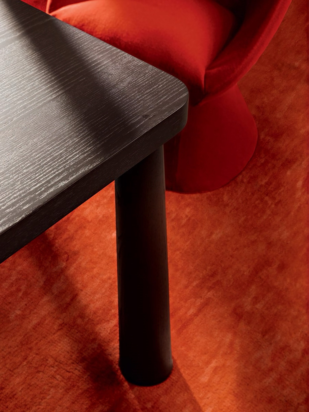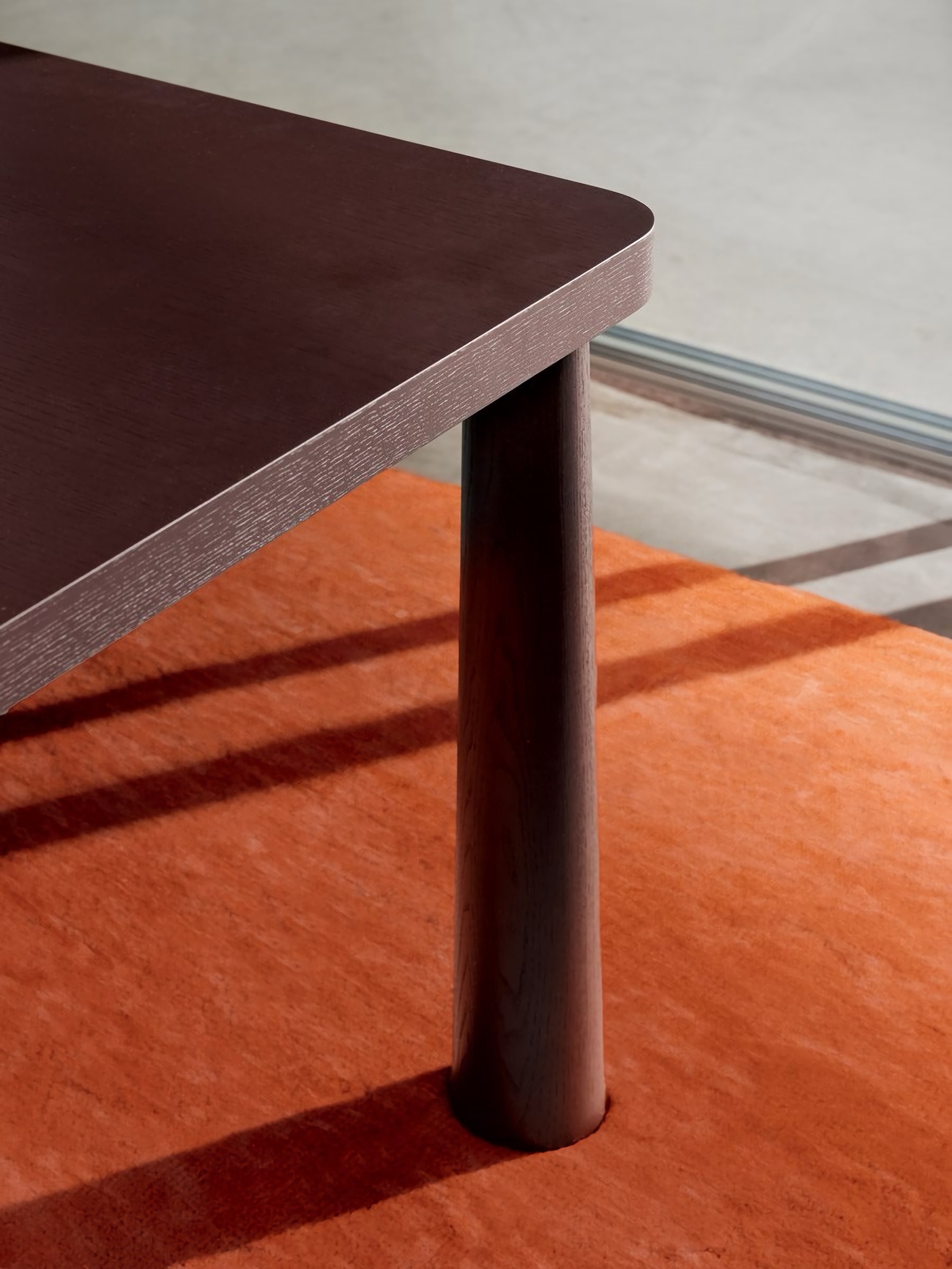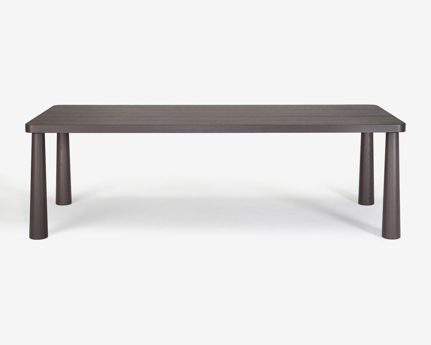 Главная особенность обеденного стола Zanotta Tidone — массивная столешница толщиной 50 мм, выполненная из дерева с алюминиевым сотовым сердечником. Скульптурный характер стола подчёркивают ножки, имеющие форму асимметричного усечённого конуса. Исключительно прочная модель представлена в выразительных оттенках: от глубокого «espresso» до цвета «amaranth».
