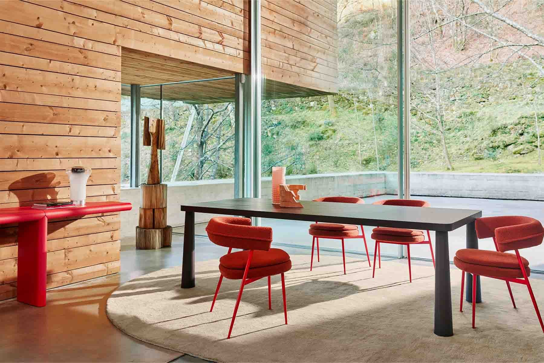 Обеденный стол Zanotta Tidone доступен в различных размерах и вариантах отделки. За подробностями можно обратиться к менеджерам Laboratory Dome.