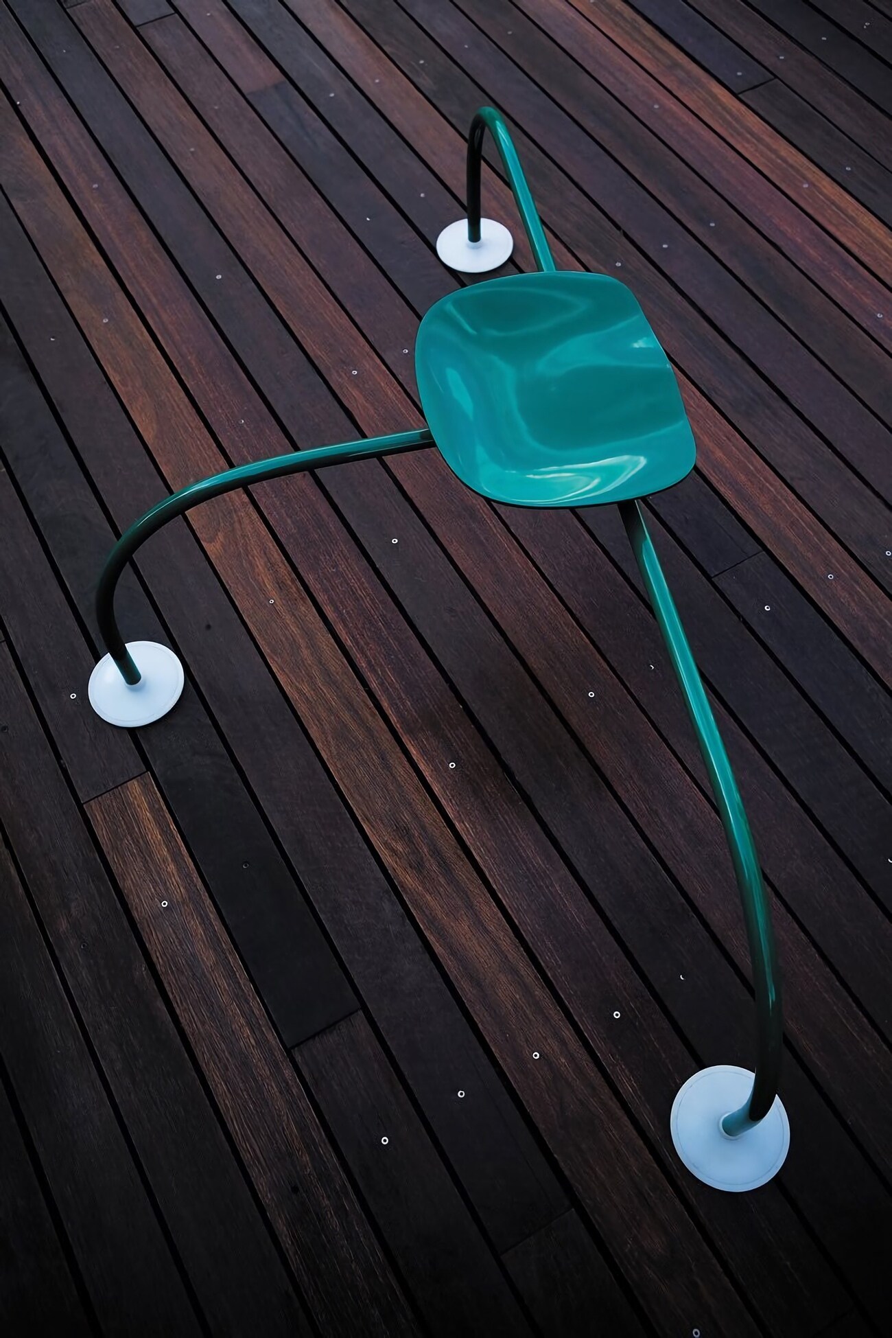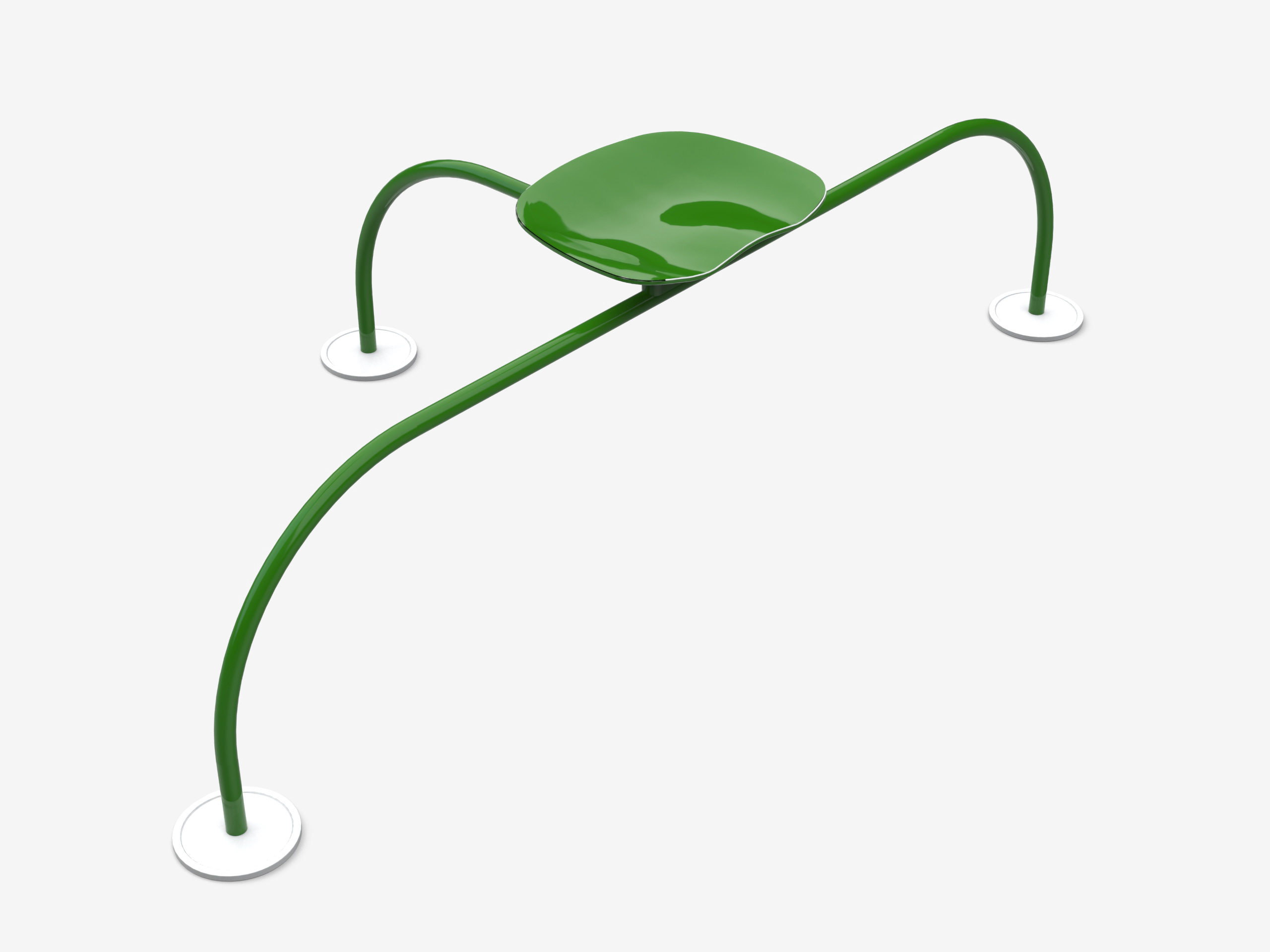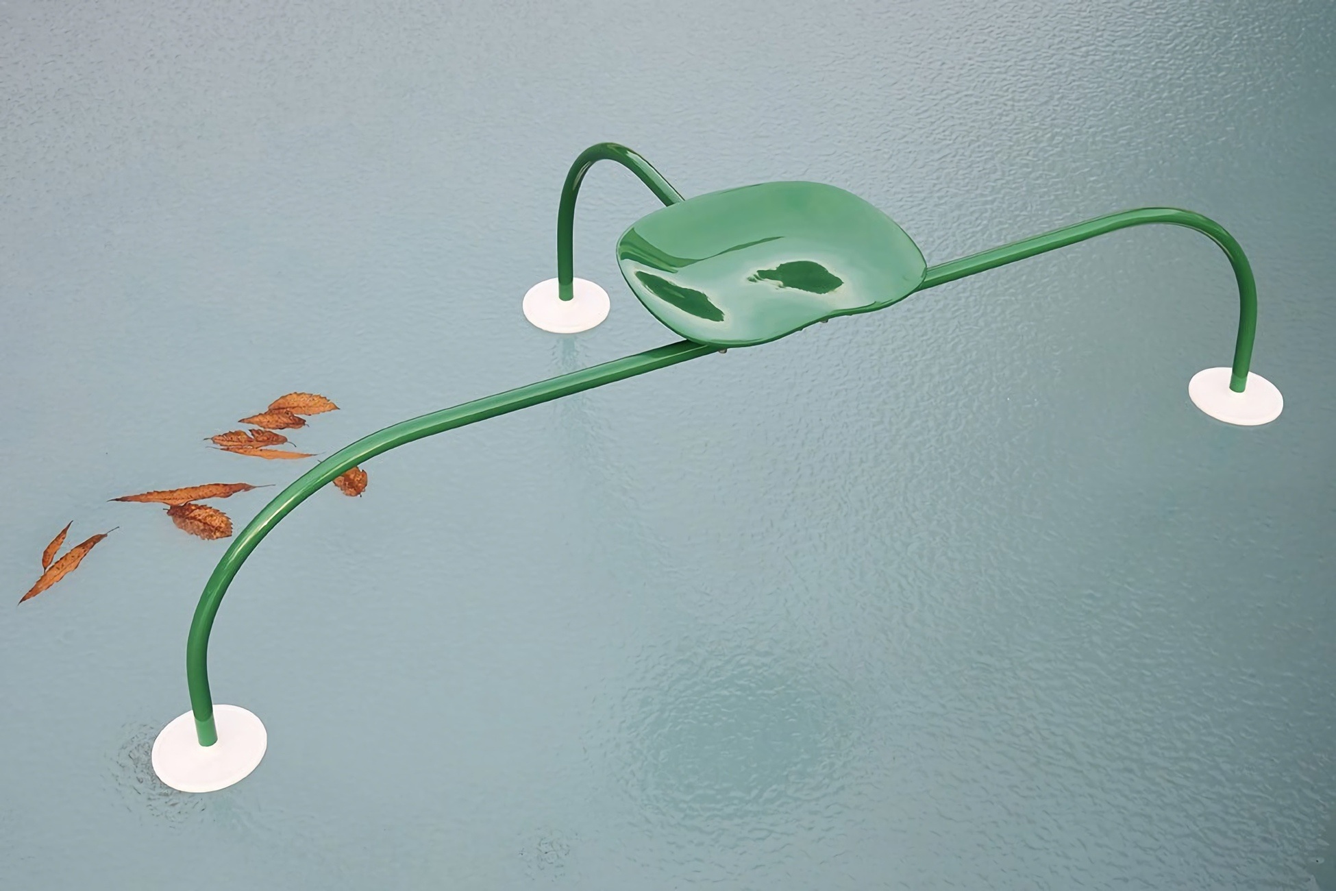 Уличный табурет Zanotta Allunaggio — один из самых необычных футуристических объектов в коллекции фабрики. Название изделия отсылает к космической тематике, а его изогнутый металлический силуэт напоминает посадочный модуль звездолёта. Травянисто-зелёный оттенок позволяет табурету визуально растворяться в природном окружении.