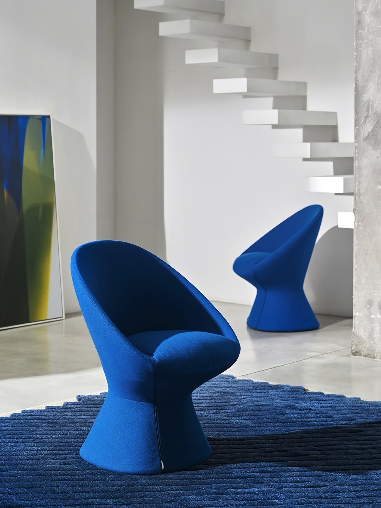 Стул Zanotta Giuno сочетает скульптурный силуэт и функциональность. Текучие линии кресла Giuno плавно переходят в широкое основание, создавая комфортную для отдыха модель. Поверхность стула полностью обтягивается качественным текстилем либо кожей, а едва заметные декоративные швы подчёркивают высокое качество исполнения модели.