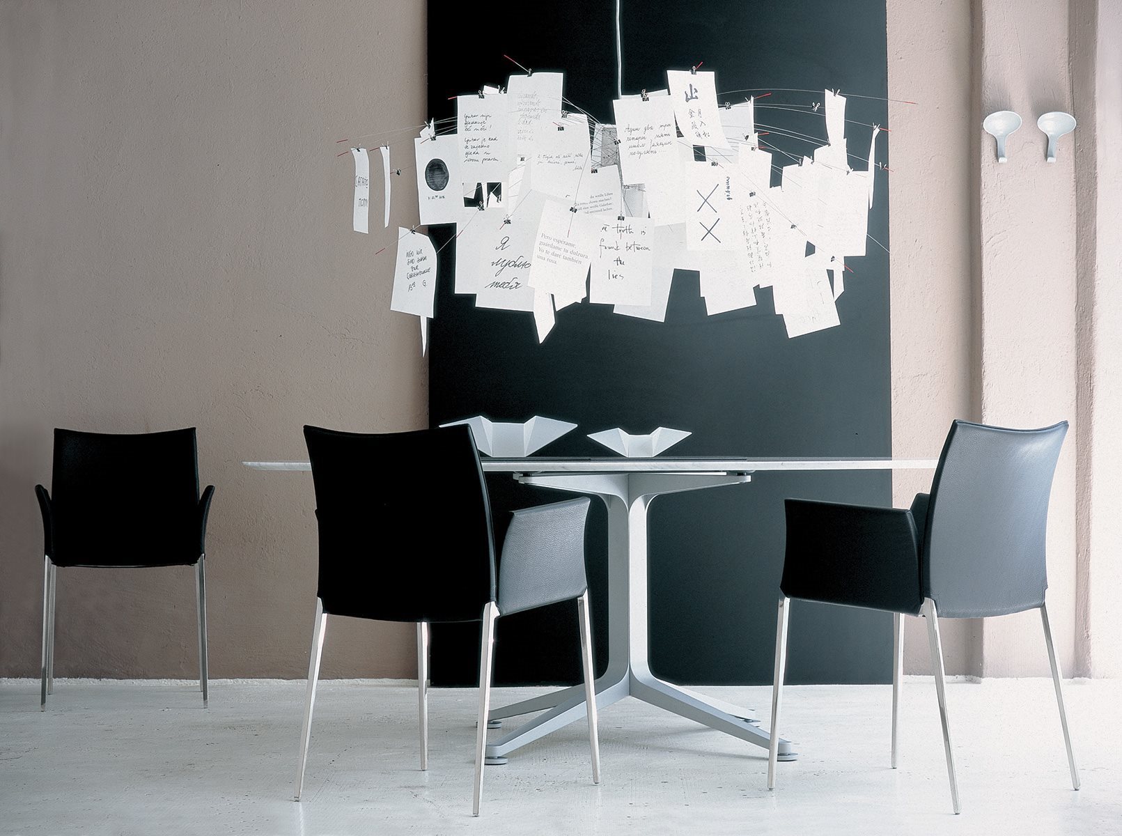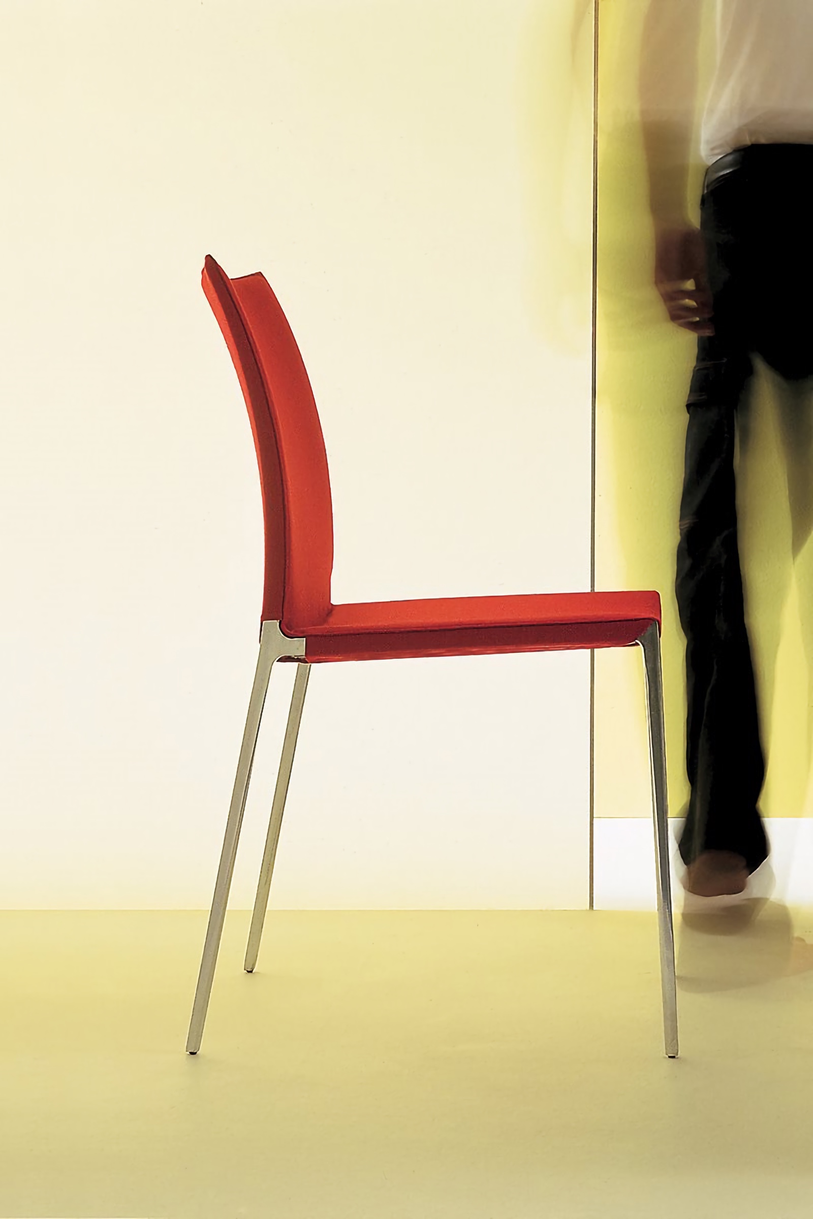 Стул Zanotta Lia — образец современного дизайна, сочетающий минималистичную строгость каркаса и мягкую обивку. Лаконичный стул с визуально лёгким силуэтом имеет удобную выгнутую спинку, повторяющую форму тела. Главным преимуществом модели Lia является съёмный чехол, который может быть выполнен из широкого спектра материалов.