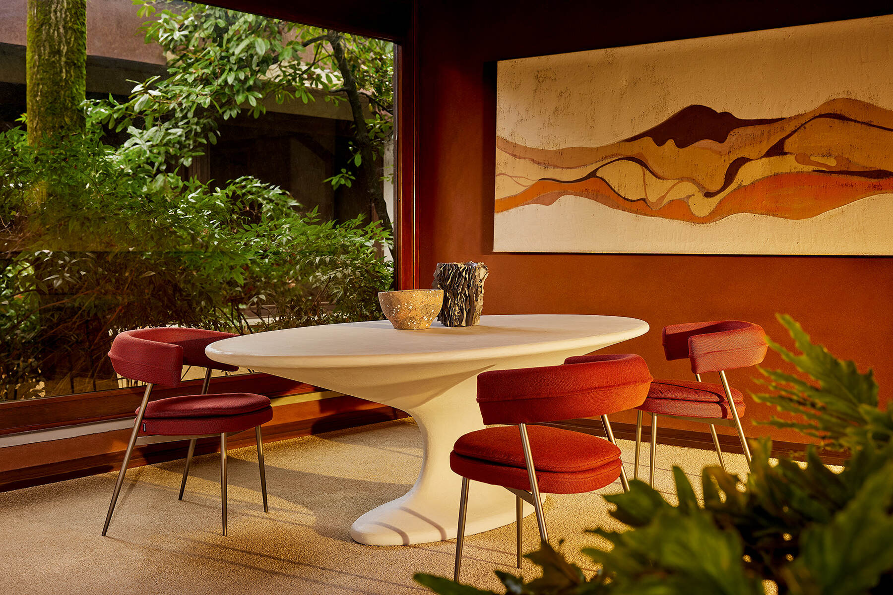 Дизайн стула Zanotta Nena построен на выразительном контрасте между тонким графичным каркасом и пышными объёмными формами сиденья. Массивная спинка модели обнимает сидящего, создавая уютное защищённое пространство для отдыха. Многослойная набивка из полиуретана разной плотности обеспечивает непревзойдённый комфорт, а стальные ножки придают модели современный лоск.