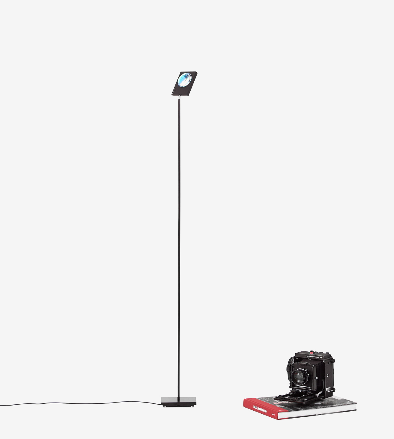 Напольный светильник Evo 2 изготовлен из алюминия, железа и стекла. Поворотный механизм рассеивателя выполнен из латуни.