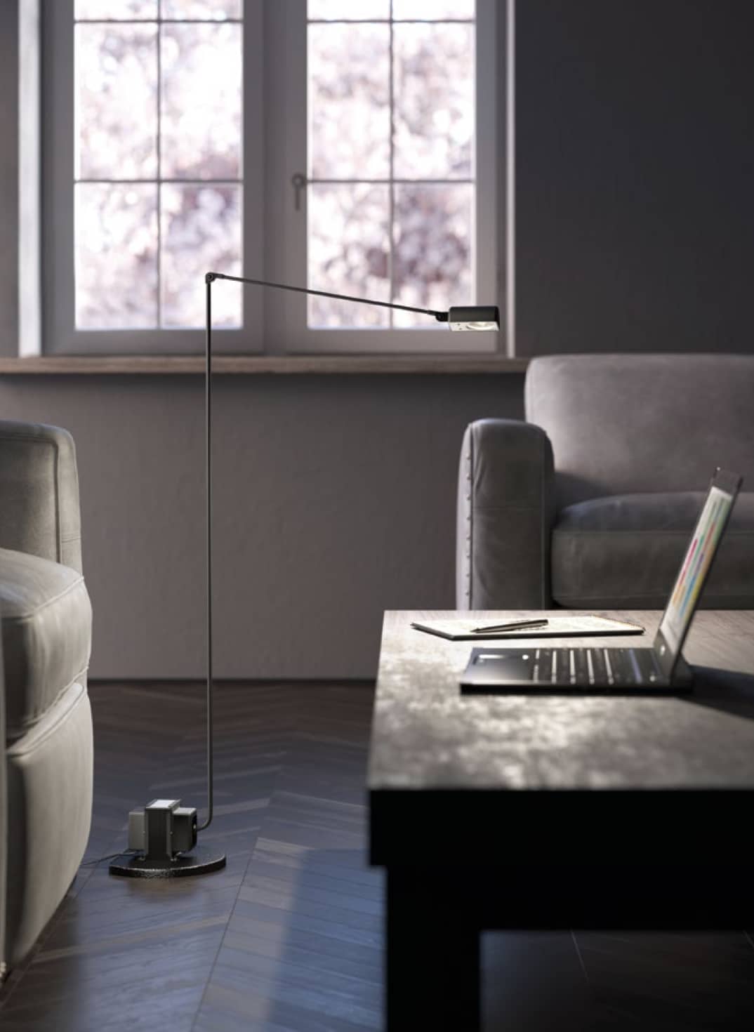 Торшер Lumina Daphine Terra — это неподвластный времени синтез функции и формы. Шарнирный рычаг с поворотным диффузором установлен на трансформаторе. Шарнирный кронштейн и диффузор вращаются на 360°. Чугунное основание покрыто чёрным лаком.