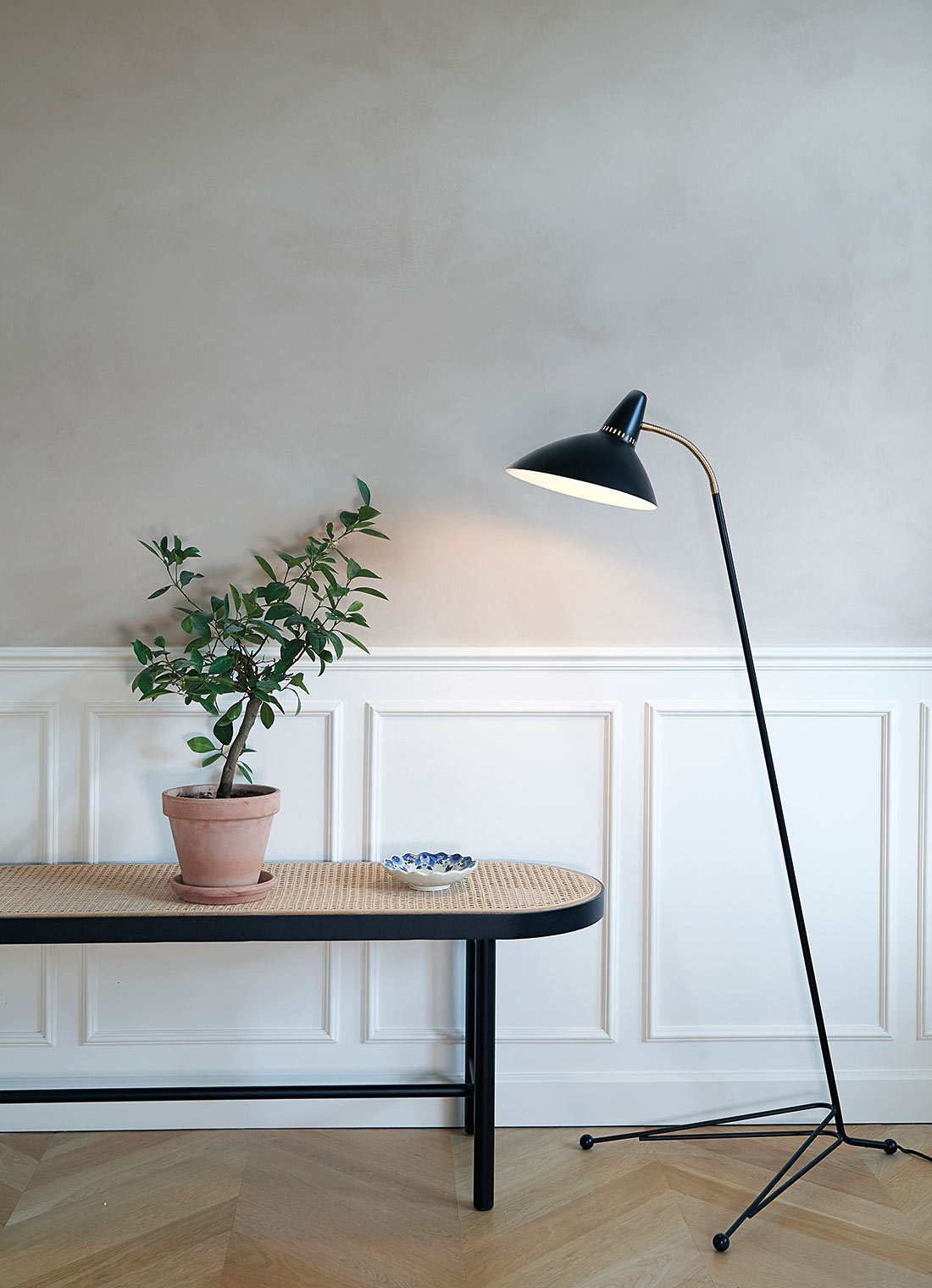 Торшер Warm Nordic Lightsome предлагает щедрое освещение, обеспечиваемое широким скульптурным абажуром. Он идеально подходит для использования в качестве лампы для чтения или рядом с диваном. Тонкая трёхножка делает лампу особенно изысканной.