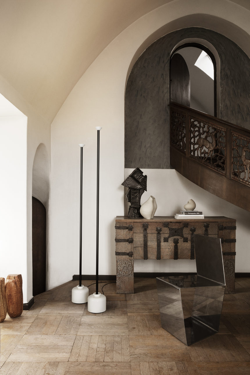 Основание торшера Astep Model 1095 выполнено из стали. Стержень —алюминий.