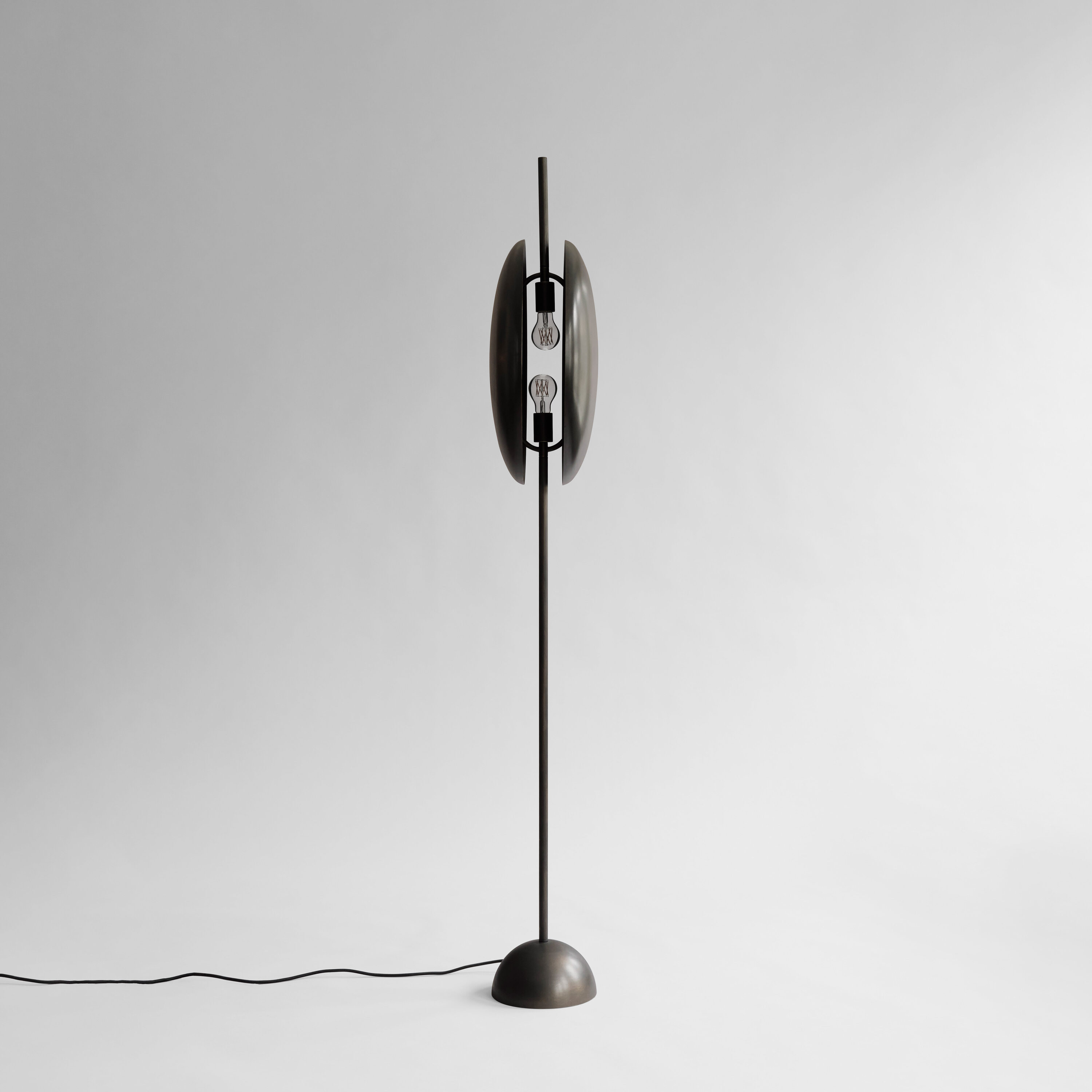 Торшер 101 Copenhagen Totem Floor Lamp представляет собой скульптурный предмет интерьера, воплощающий основные элементы дизайна фабрики. Скрытая между двумя круглыми металлическими экранами со слегка изогнутыми концами, лампочка обеспечивает непрямое освещение, которое меняется в зависимости от точки зрения.