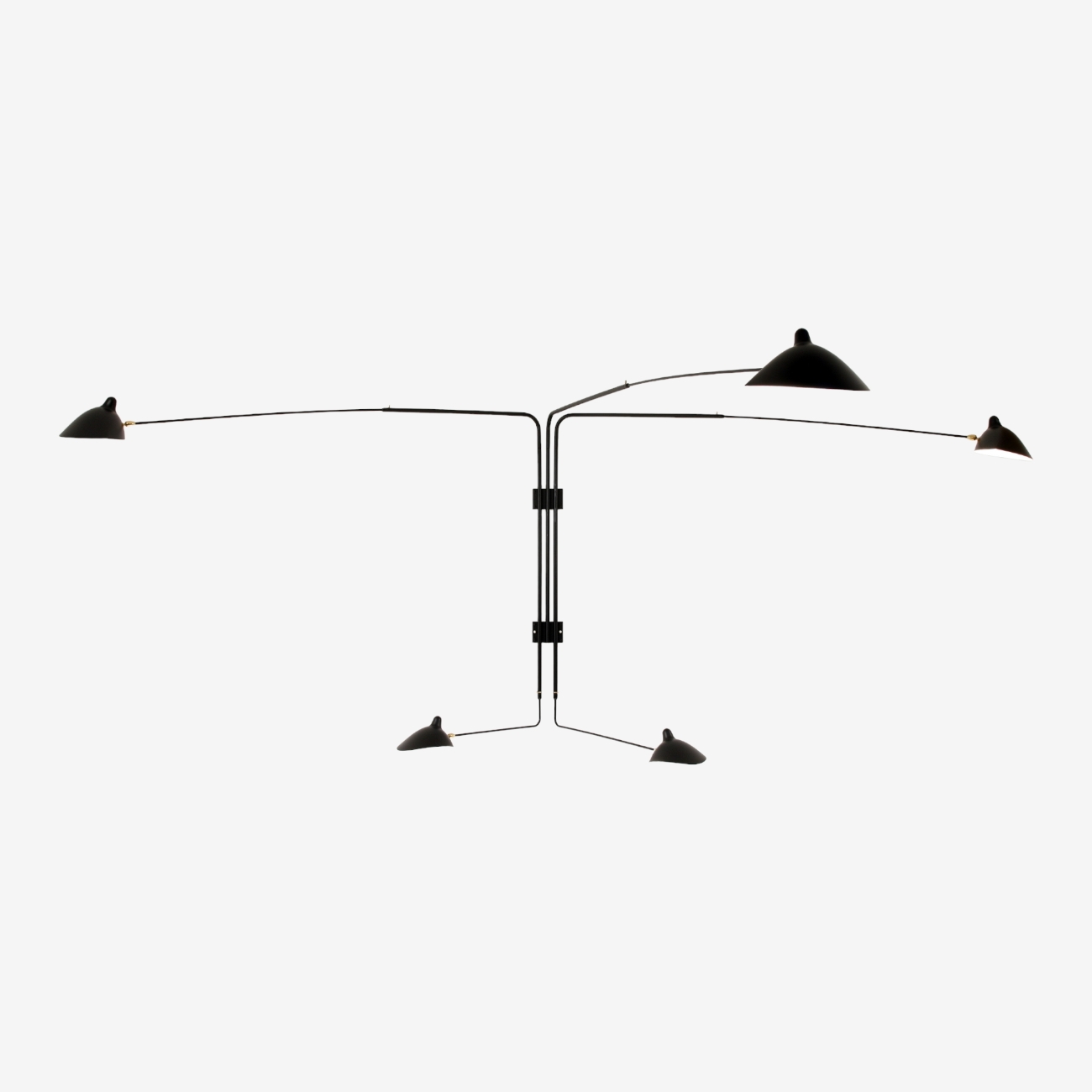 Бра Five-Arm Rotating Wall Sconce от Serge Mouille объединяет эстетическое превосходство с прагматическим комфортом. Уточнённый, проверенный временем дизайн дополняют поворотные механизмы, что позволяет регулировать положение и направление всех пяти плафонов. Бра доступно в белом или чёрном исполнении, благодаря чему вы можете быть уверены, что подберёте вариант, наиболее подходящий вашему интерьеру.