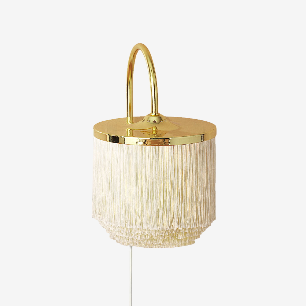 Бра Warm Nordic Fringe выполнено из стали с латунным покрытием. Бахрома — вискоза.