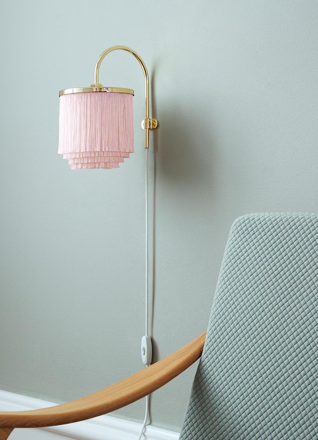 Бра Warm Nordic Fringe является воплощением тёплого северного образа жизни. Эта элегантная лампа будет потрясающе смотреться рядом с диваном или креслом, а также украсит любую прихожую или спальню. Светильник Fringe создан с чувством ностальгии по интерьерам прошлого. Вы можете выбрать цвет бахромы из двух нежных пастельных тонов.