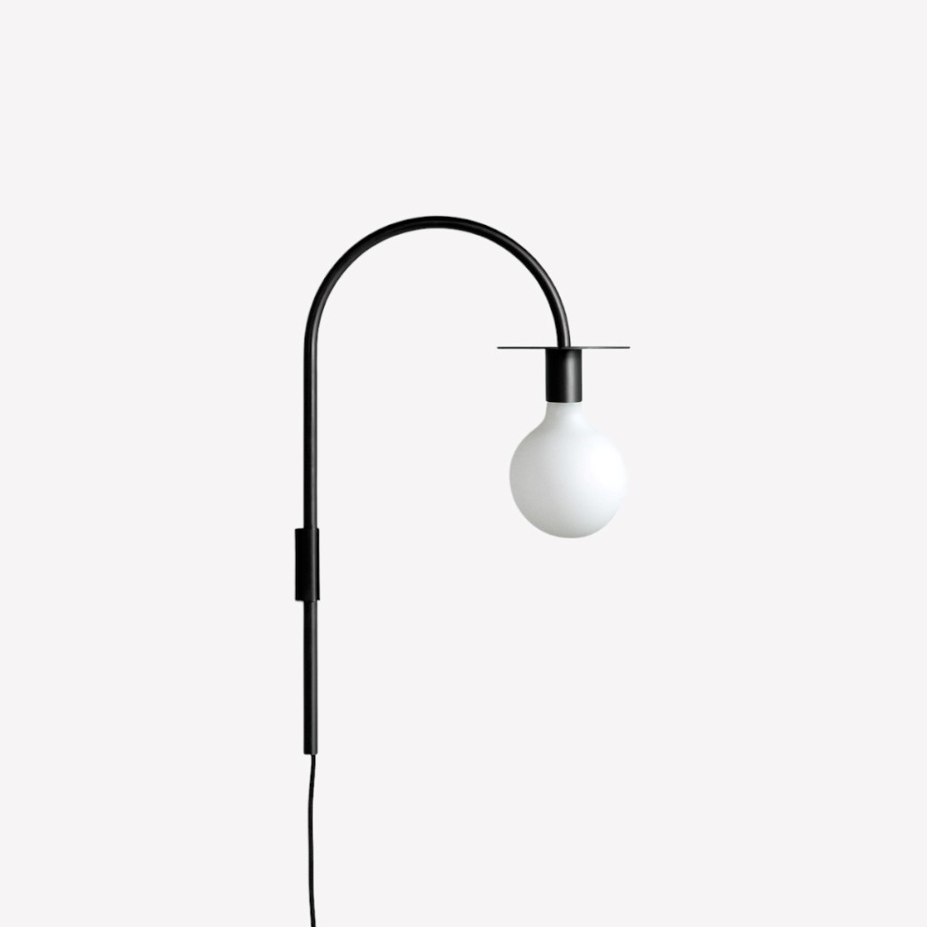 Настенный светильник Friends Founders La Lampe выглядит романтично и изящно за счёт изогнутого шеста и сочетания тёмного матового металла со светлым глянцевым стеклом.
