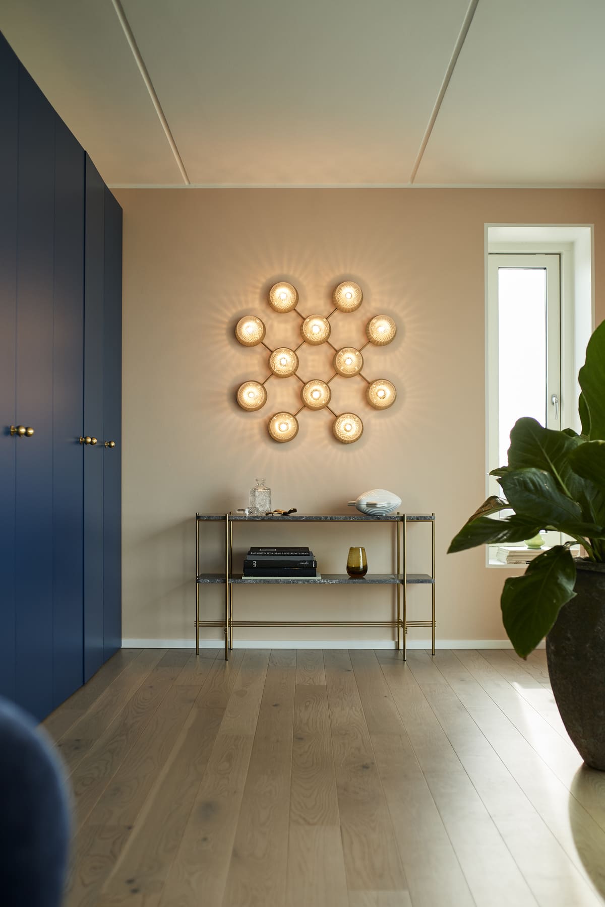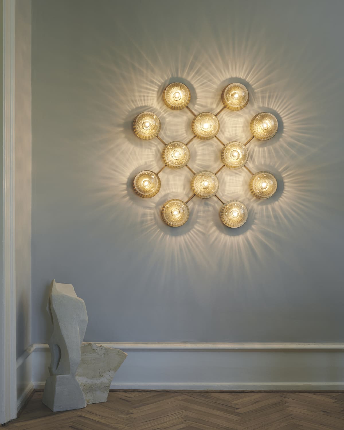 Бра Nuura Liila 12 имеет изысканный утончённый дизайн. На минималистичный каркас установлены стеклянные сферы, изготовленные вручную. Модель монтируется на стену или потолок, добавляя в интерьер частичку скандинавской атмосферы.