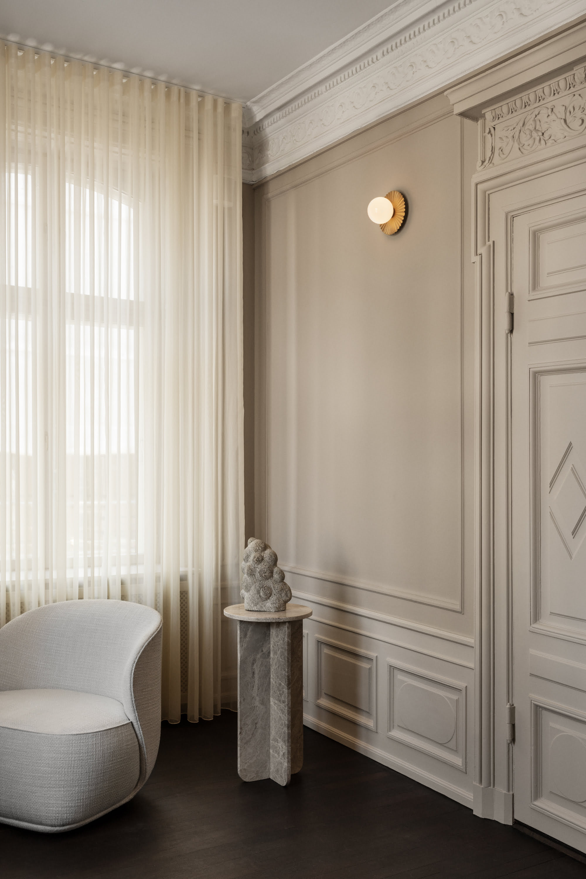 Дизайн бра Nuura Liila Muuse вдохновлён старым парком аттракционов Tivoli в Копенгагене. Задняя панель изделия имеет трёхмерные изгибы и придаёт светильнику игривый вид. Бра Liila Muuse станет элегантным украшением прихожей зоны.