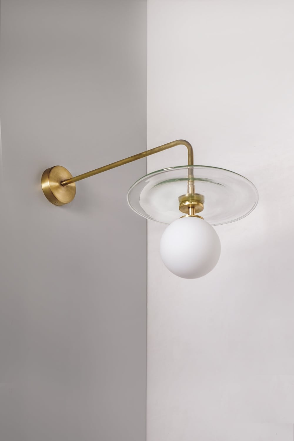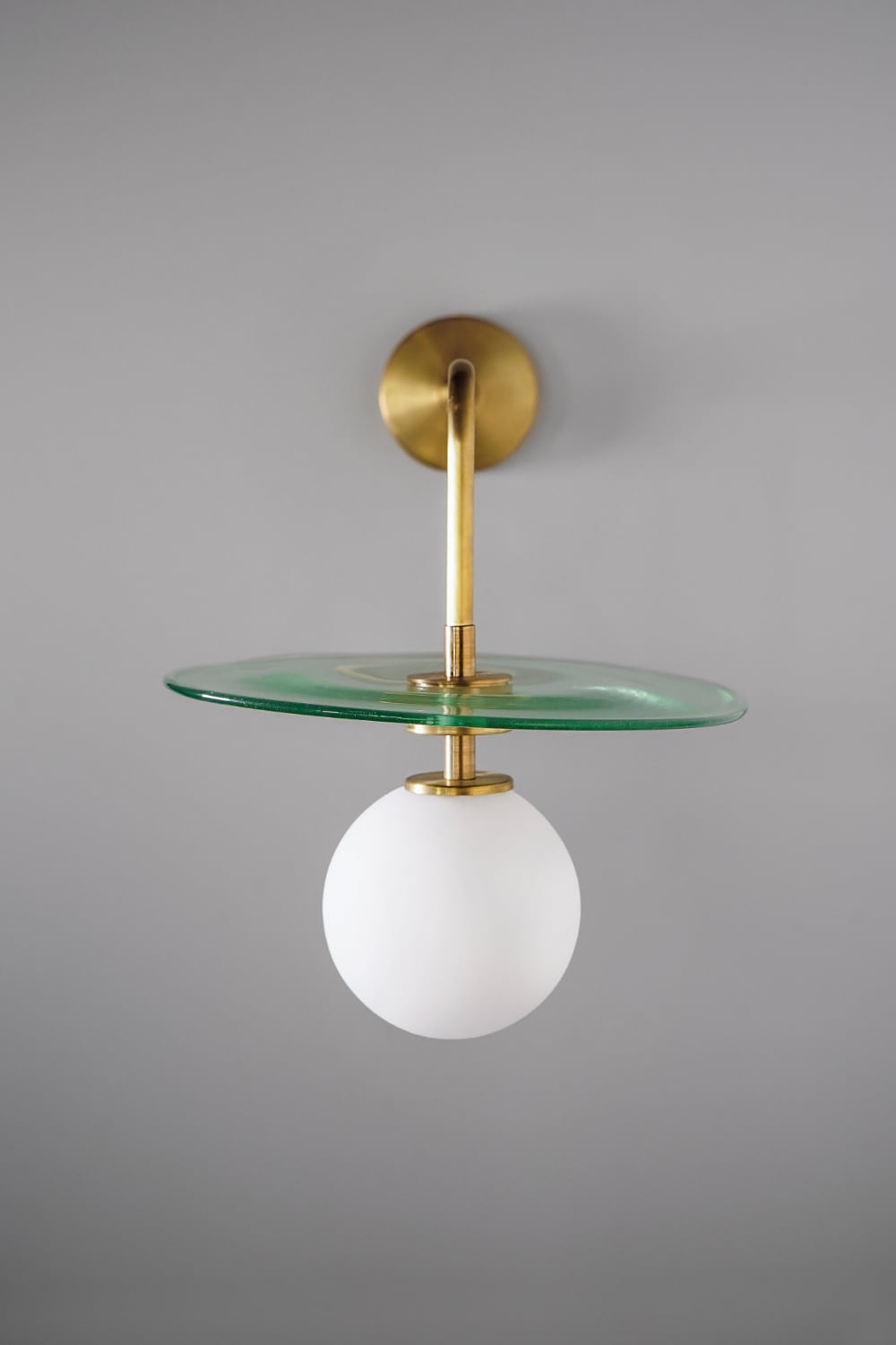 Бра Contain Plat Mini Wall — это светильник со стильным латунным основанием, исполненным в одной из фирменных отделок фабрики. Объект украшен окружностью из цветного или прозрачного стекла. Она имеет нарочитые неровности, что подчёркивает ручное производство. Plat Mini Wall плавно рассеивает свет по всей комнате, что обеспечивается опаловым диффузором.