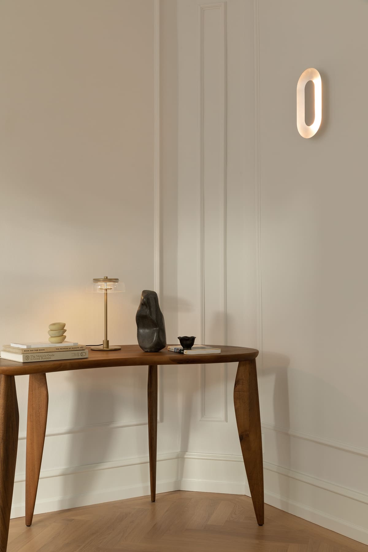 Бра Nuura Sasi обладает органичной округлой формой. Центральная вставка из полированного металла создаёт зеркальный эффект, причудливо отражая свет. Цветные алюминиевые и латунные детали добавляют модели красок, делая её более игривой и живой.