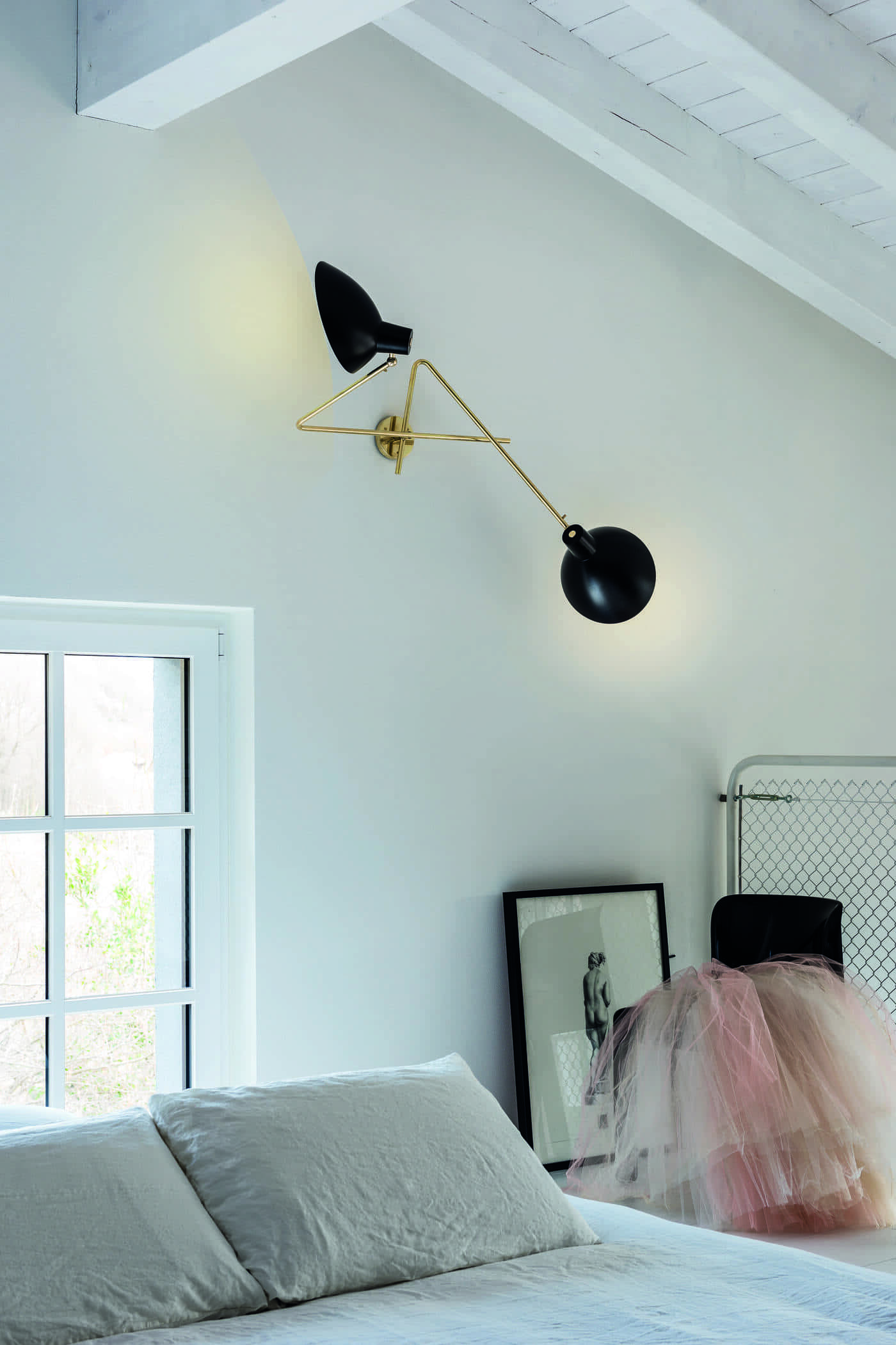 Бра Astep VV Cinquanta Twin изготовлено из прочных металлов. Модель обладает подвижными отражателями, с помощью которых можно создать как прямое, так и непрямое освещение. Большое количество цветовых решений позволяет расположить лампу в любом интерьере.